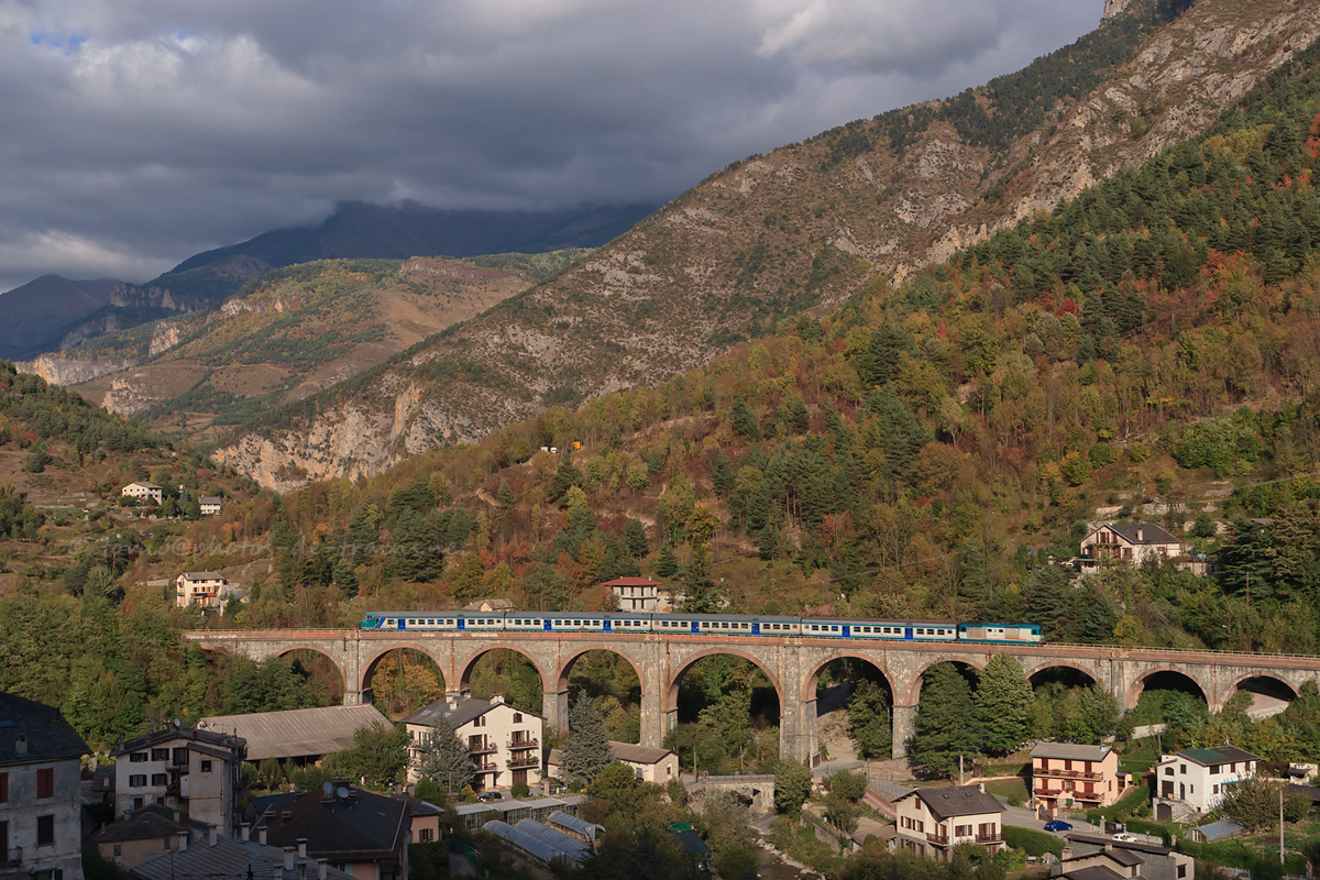 Détails photographie Titre : Train régional Taggia - Torino Description : Lumière et couleurs d'automne sur le train Regionale 22980 Taggia - Torino-Porta-Nuova, passant le Viaduc de Tende. Date de la prise de vue : dimanche 05 octobre 2008 - 16h48 (heure locale) Date de mise en ligne : lundi 08 décembre 2008 - 01h22 Numéro de la photo : 1847 Dimensions de la photo : 1200x800 Taille du fichier : 541.68 Ko Cette photo appartient aux types de photo suivants : Trains en ligne Cette photo présente les éléments visuels suivants : Conditions météo - Ciel très nuageux Conditions météo - Jour Paysage - Montagne/Colline/Falaise Paysage - Pont/Viaduc Paysage - Village/Maisons |