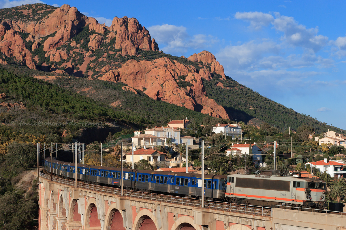 Description : La BB 25677, en pousse de deux RIO PACA en direction de Cannes, traverse le viaduc d'Anthéor. Date de la prise de vue : samedi 11 mars 2006 - 17h00 (heure locale) Date de mise en ligne : mercredi 02 mai 2007 - 12h17 Numéro de la photo : 27 Dimensions de la photo : 1200x800 Taille du fichier : 583.73 Ko Cette photo appartient aux types de photo suivants : Trains en ligne Cette photo présente les éléments visuels suivants : Conditions météo - Jour Éléments ferroviaires - Caténaire 25 kV Paysage - Montagne/Colline/Falaise Paysage - Pont/Viaduc Paysage - Village/Maisons |