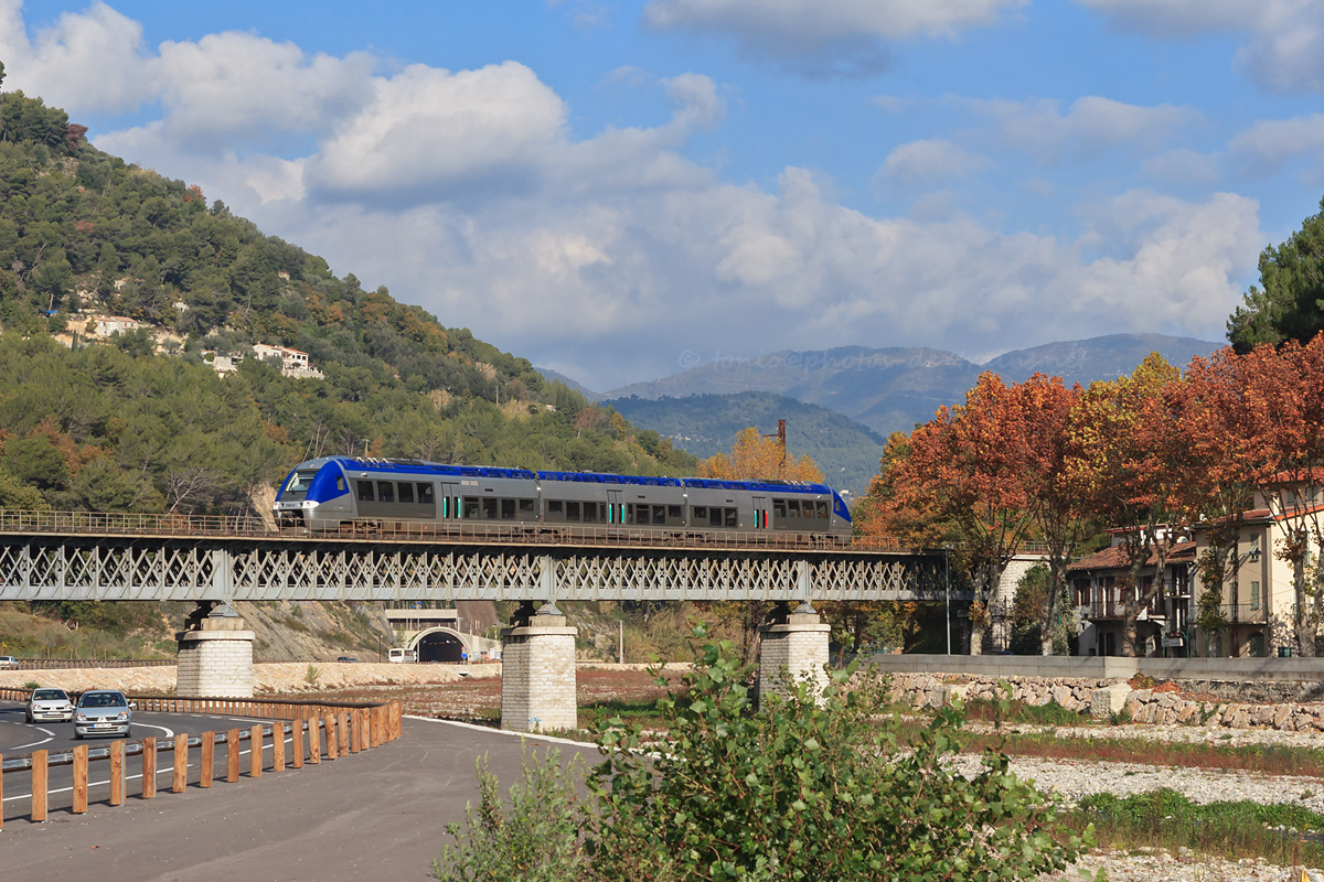 Détails photographie Titre : X 76671/76672 sur le TER 22948 Description : Traversée du Paillon par le X 76671/76672 assurant le TER 22948 Tende - Nice-Ville. Date de la prise de vue : lundi 20 novembre 2006 - 13h34 (heure locale) Date de mise en ligne : mardi 15 mai 2007 - 14h14 Numéro de la photo : 320 Dimensions de la photo : 1200x800 Taille du fichier : 510.54 Ko Cette photo appartient aux types de photo suivants : Trains en ligne Cette photo présente les éléments visuels suivants : Conditions météo - Ciel très nuageux Conditions météo - Jour Paysage - Montagne/Colline/Falaise Paysage - Pont/Viaduc |