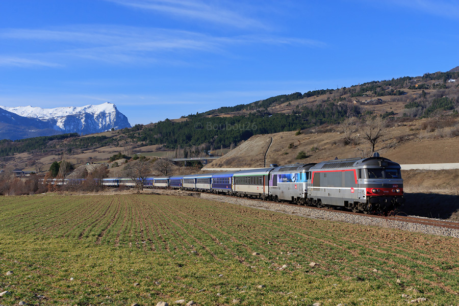 Détails photographie Titre : UM de BB 67400 bordelais pour Briançon Description : Fait rare : la présence d'un 67400 En Voyage sur les trains de nuit des pointes d'hiver briançonnaises. Il s'agit du BB 67585 de Bordeaux, qui assure ici, avec le BB 67418, un train de nuit supplémentaire Paris-Austerlitz - Briançon. Ils sont vus à la sortie du Bramafan. Date de la prise de vue : samedi 19 février 2011 - 09h36 (heure locale) Date de mise en ligne : samedi 19 mars 2011 - 18h50 Numéro de la photo : 3751 Dimensions de la photo : 900x600 Taille du fichier : 314.07 Ko Cette photo appartient aux thèmes suivants : Pointes d'hiver briançonnaises 2010-2011 Cette photo appartient aux types de photo suivants : Trains en ligne Cette photo présente les éléments visuels suivants : Conditions météo - Jour Conditions météo - Neige Paysage - Montagne/Colline/Falaise Paysage - Pont/Viaduc |