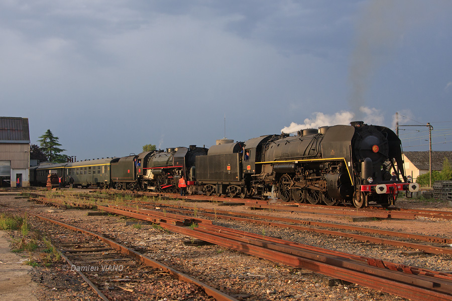 | Détails photographie Titre : La double-traction au dépôt des Aubrais Description : Les 141 R 840 et 141 R 420 s'apprêtent à amener leur rame en gare des Aubrais-Orléans, afin que les voyageurs à destination de Longueville y prennent place. Date de la prise de vue : vendredi 16 septembre 2011 - 08h42 (heure locale) Date de mise en ligne : jeudi 06 octobre 2011 - 11h28 Numéro de la photo : 4064 Dimensions de la photo : 900x600 Taille du fichier : 274.92 Ko Cette photo appartient aux thèmes suivants : La rotonde de Longueville fête ses 100 ans ! Cette photo appartient aux types de photo suivants : Dépôts Cette photo présente les éléments visuels suivants : Conditions météo - Ciel très nuageux Conditions météo - Crépuscule/Aube Conditions météo - Jour Éléments ferroviaires - Matériel plaqué (en relief) Notes du photographe : Composition du train : DEV AO A8 DEV AO A8 B10 OCEM face lisse, origine État (B10 myfi 34915) B11 Bacalan (ex-C11) (B11 myfi 54763) USI B10 (B10 myfi 83047) USI B10 OCEM PLM (B9c9 yfi 5805) Pullman 1ère classe (4155) Voiture restaurant CIWL (4207) Métallique Est mixte/fourgon (A3B4D zyfi 3451) Cette photo a été prise dans le cadre des festivités organisées à l'occasion du centenaire de la rotonde de Longueville, lors des journées du Patrimoine qui se sont déroulées les 17 et 18 septembre 2011. Ce rassemblement de locomotives à vapeur en chauffe est le plus important que l'on ait pu voir en France, depuis la fin de la vapeur au début des années 1970. Plusieurs locomotives sont venues de toute la France (Toulouse, Clermont-Ferrand, Limoges, Orléans...) pour participer aux festivités, et organiser des trains spéciaux sur la célèbre Ligne 4, ainsi que sur l'antenne de Provins. Un grand merci à l'AJECTA pour cette organisation considérable, ainsi qu'à toutes les autres associations présentes, et aux différents service de la SNCF qui ont permis la réalisation de ces circulations ! (ainsi qu'à Romain D. pour l'identification des voitures). |