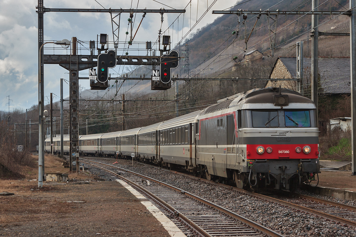 Détails photographie Titre : BB 67380 sur le GL 4780 Chambéry - Toulouse Description : Gare de Montmélian, le train 4780 Chambéry-Challes-les-Eaux - Toulouse-Matabiau, tracté par le BB 67380, s'engage sur la ligne Grenoble - Montmélian. Date de la prise de vue : samedi 24 février 2007 - 16h09 (heure locale) Date de mise en ligne : jeudi 17 mai 2007 - 18h41 Numéro de la photo : 410 Dimensions de la photo : 1200x800 Taille du fichier : 524.54 Ko Cette photo appartient aux thèmes suivants : Pointes d'hiver savoyardes 2006-2007 Cette photo appartient aux types de photo suivants : Trains en gare Cette photo présente les éléments visuels suivants : Conditions météo - Ciel très nuageux Conditions météo - Jour Éléments ferroviaires - Caténaire 1.5 kV Éléments ferroviaires - Signalisation lumineuse Paysage - Montagne/Colline/Falaise Paysage - Village/Maisons |