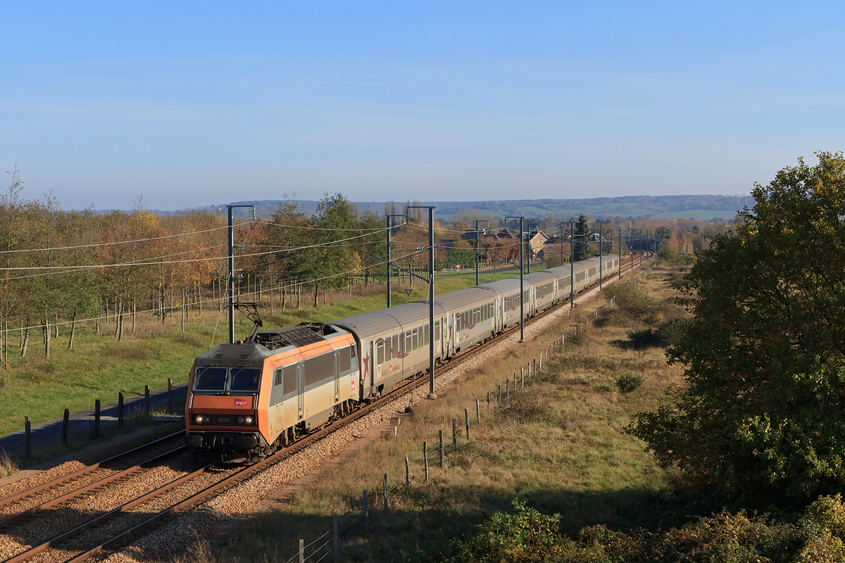 Détails photographie Titre : BB 26035 pour Cherbourg Description : La BB 26035 est à la traction d'un InterCités Paris - Cherbourg. Elle est vue lors de son passage au Mesnil -Mauger, entre Lisieux et Caen. Date de la prise de vue : dimanche 13 novembre 2011 - 11h36 (heure locale) Date de mise en ligne : dimanche 11 décembre 2011 - 19h03 Numéro de la photo : 4212 Dimensions de la photo : 1200x800 Taille du fichier : 492.67 Ko Cette photo appartient aux types de photo suivants : Trains en ligne Cette photo présente les éléments visuels suivants : Conditions météo - Jour Éléments ferroviaires - Caténaire 25 kV Éléments ferroviaires - Pancarte kilométrique/hectométrique/PN Paysage - Village/Maisons |