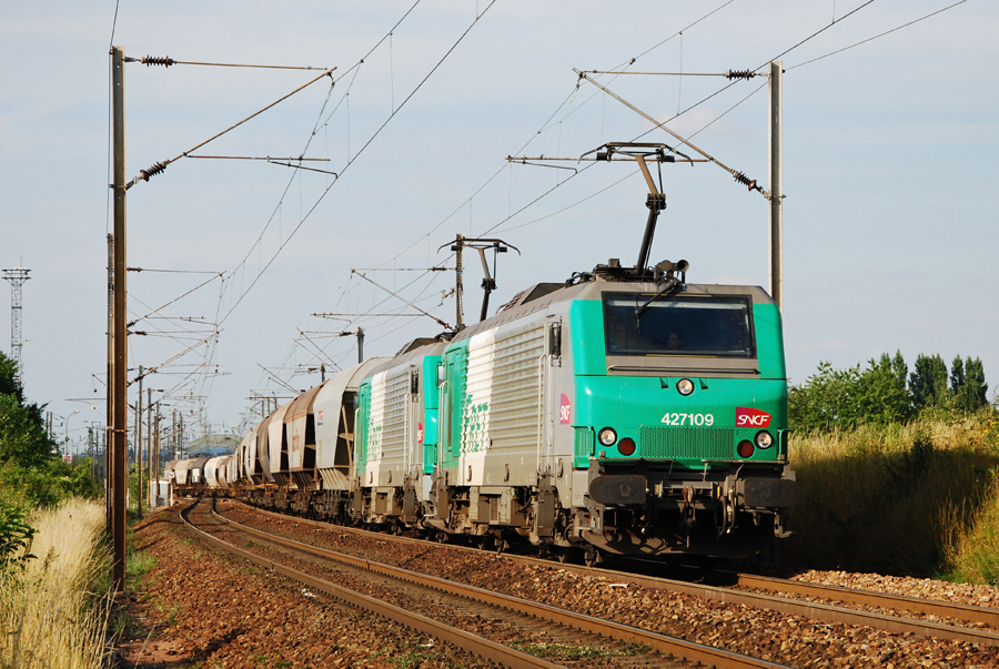 Détails photographie Titre : BB 27109 en UM sur une rame de céréaliers Description : Un UM de 27000 (27109 menante) vient de passer la bifurcation d'Ormoy-Villers et fonce vers Le Bourget. Date de la prise de vue : lundi 11 juillet 2011 - 19h11 (heure locale) Date de mise en ligne : mardi 27 décembre 2011 - 09h57 Numéro de la photo : 4242 Dimensions de la photo : 900x603 Taille du fichier : 373.63 Ko Cette photo appartient aux types de photo suivants : Trains en ligne Cette photo présente les éléments visuels suivants : Conditions météo - Jour Éléments ferroviaires - Caténaire 25 kV |
