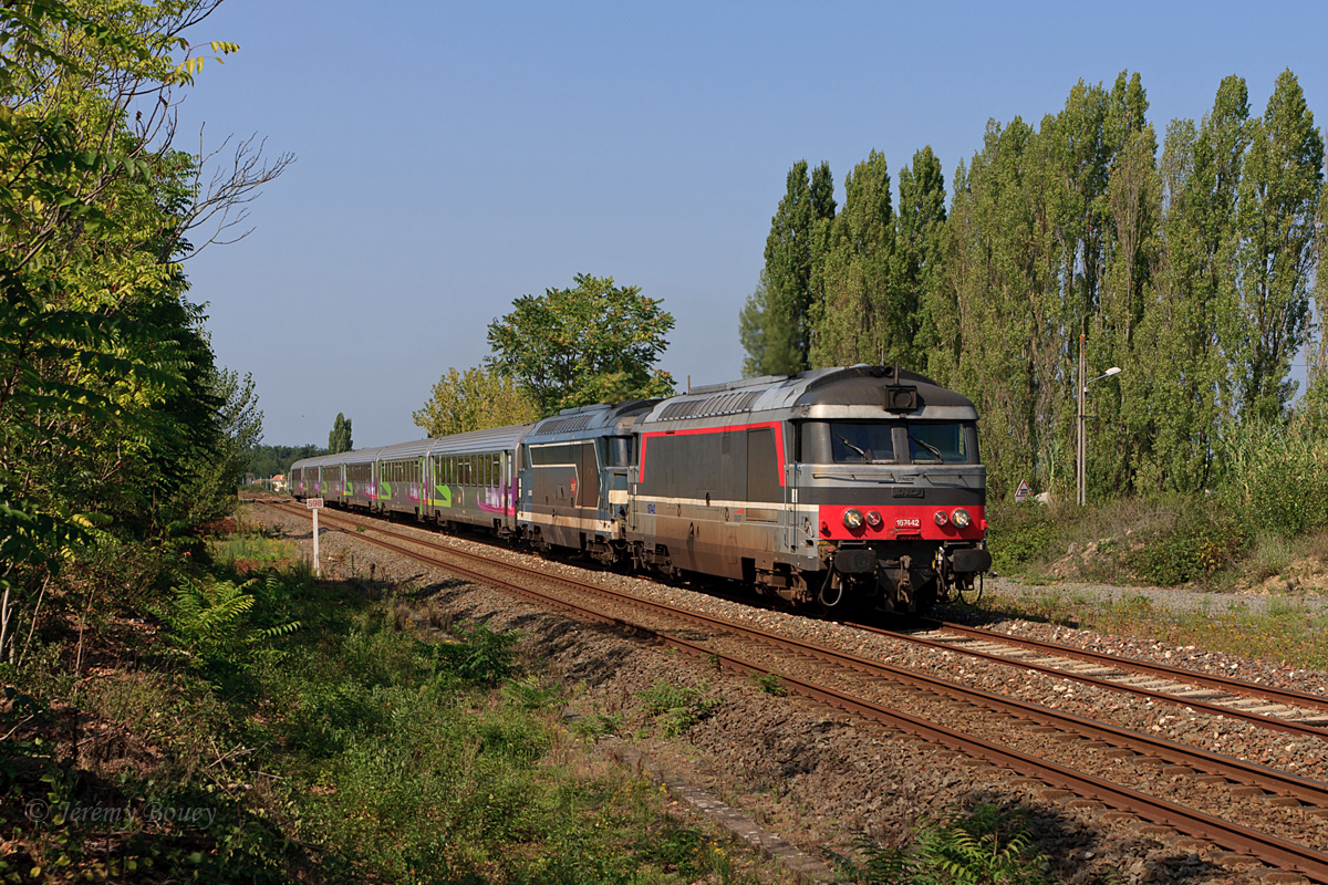 Détails photographie Titre : IC 3831 Nantes - Bordeaux à La Grave-d'Ambarès Description : L'InterCités 3831 Nantes - Bordeaux-St-Jean, mené par les BB 67442 et BB 67607, s'apprête à rejoindre la caténaire, au raccordement de La Grave-d'Ambarès. Date de la prise de vue : vendredi 19 août 2011 - 16h17 (heure locale) Date de mise en ligne : samedi 31 décembre 2011 - 13h50 Numéro de la photo : 4247 Dimensions de la photo : 1200x800 Taille du fichier : 652.21 Ko Cette photo appartient aux types de photo suivants : Trains en ligne Cette photo présente les éléments visuels suivants : Conditions météo - Jour Éléments ferroviaires - Pancarte kilométrique/hectométrique/PN |