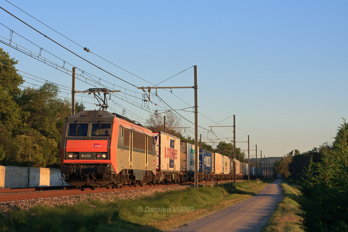 Détails photographie Titre : BB 26000 et train de conteneurs Description : Le train N° 50000 Avignon - Dourges Delta 3 passe sous les derniers rayons du soleil à Courthézon, au sud d'Orange. Date de la prise de vue : jeudi 11 août 2011 - 20h18 (heure locale) Date de mise en ligne : vendredi 27 janvier 2012 - 11h18 Numéro de la photo : 4310 Dimensions de la photo : 1200x800 Taille du fichier : 411.83 Ko Cette photo appartient aux types de photo suivants : Trains en ligne Cette photo présente les éléments visuels suivants : Conditions météo - Crépuscule/Aube Conditions météo - Jour Éléments ferroviaires - Caténaire 1.5 kV Notes du photographe : Merci à Marcel R. pour le transport. |