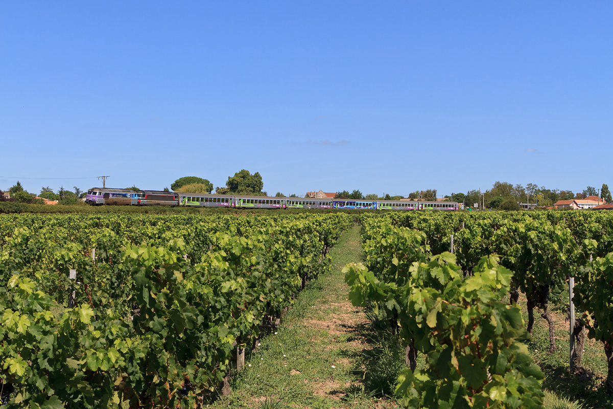Détails photographie Titre : IC 3833 dans les vignes Cubzaguaises... Description : Passage dans les vignes Cubzaguaises de l'InterCités 3833 Quimper - Bordeaux-St-Jean, remorqué ce jour par 2 BB 67400. À noter la présence de la voiture "La Rochelle". Date de la prise de vue : lundi 29 août 2011 - 14h05 (heure locale) Date de mise en ligne : mardi 07 février 2012 - 18h12 Numéro de la photo : 4336 Dimensions de la photo : 1200x800 Taille du fichier : 499.88 Ko Cette photo appartient aux types de photo suivants : Trains en ligne Cette photo présente les éléments visuels suivants : Conditions météo - Jour Paysage - Vignes Paysage - Village/Maisons |