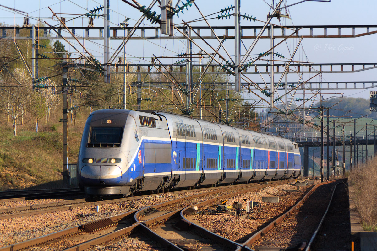 Détails photographie Titre : Une Dasye au Creusot-TGV Description : Coup de zoom sur un TGV Duplex s'apprêtant à traverser à fond la gare du Creusot-TGV sur un train pour Toulouse. Date de la prise de vue : samedi 09 avril 2011 - 08h56 (heure locale) Date de mise en ligne : mercredi 22 février 2012 - 10h09 Numéro de la photo : 4378 Dimensions de la photo : 1200x800 Taille du fichier : 490.06 Ko Cette photo appartient aux types de photo suivants : Trains en ligne Cette photo présente les éléments visuels suivants : Conditions météo - Jour Éléments ferroviaires - Caténaire 25 kV |