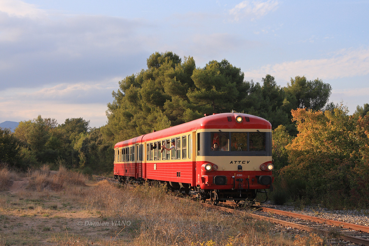 Détails photographie Titre : Coucher de soleil sur cet EAD Description : Photographié sous les derniers rayons du soleil, l'X 4567 entre en gare de Pourcieux, première gare Varoise de la ligne Gardanne - Carnoules, alors qu'il effectue une marche spéciale depuis Marseille. Date de la prise de vue : samedi 02 octobre 2010 - 18h07 (heure locale) Date de mise en ligne : dimanche 26 février 2012 - 10h13 Numéro de la photo : 4387 Dimensions de la photo : 1200x800 Taille du fichier : 471.52 Ko Cette photo appartient aux thèmes suivants : Tour en Provence avec l'X 4567 Cette photo appartient aux types de photo suivants : Trains en ligne Cette photo présente les éléments visuels suivants : Conditions météo - Ciel très nuageux Conditions météo - Crépuscule/Aube Conditions météo - Jour Notes du photographe : Du 30 septembre au 2 octobre 2010, l'association Varoise a organisé un voyage avec l'X 4567 à travers la Provence et la Côte d'Azur. Radié à Marseille le 30 juin 2006, cet EAD est désormais basé au dépôt de l'ATTCV à Besse-sur-Issole, non loin de Carnoules (83), et effectue en temps normal des trains touristiques entre Carnoules et Brignoles, sur la VUTR Carnoules - Gardanne. Programme de ces trois jours : - 30/09/2010 : Carnoules - Brignoles - Gardanne - Marseille. Ce fut l'occasion pour cet autorail de retrouver la ligne Aix - Marseille, qu'il fréquentait assidûment avant la modernisation, et de côtoyer ses successeurs, les B 81500 ; - 01/10/2010 : Marseille - Nice - Marseille. Là aussi, retour 10 ans en arrière lorsque les X 4500 Marseillais officiaient encore sur la ligne Nice - Breil - Cuneo, avant d'être massivement remplacés par les X 2200, puis X 76500 ; - 02/10/2010 : Marseille - Miramas par la ligne de la Côte Bleue, puis Miramas - Rognac par la PLM, Rognac - Aix par la ligne marchandises, Aix - Marseille - Gardanne et retour sur Carnoules par la VUTR. Un grand merci à l'ATTCV qui a tenu à organiser ce voyage, ainsi qu'à mes différents conducteurs, Marcel R., Fabrice O. et Jérémy B. ! |