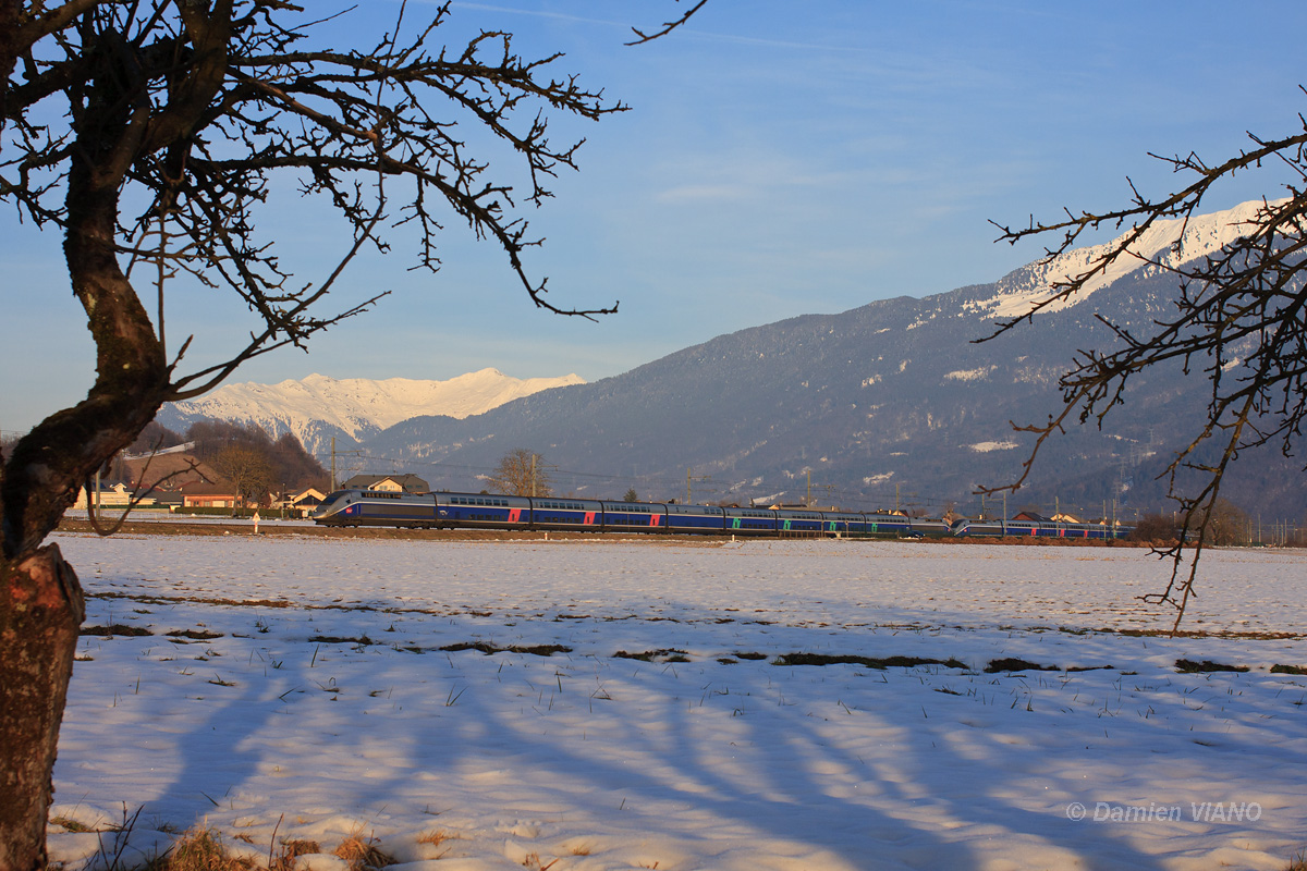 Détails photographie Titre : Retour de TGV à vide sur Paris Description : Après avoir effectué un des nombreux TGV supplémentaires dans la vallée de la Tarentaise, lors des traditionnelles super-pointes hivernales, cette UM de TGV Dasye est vue en sortie de la gare de Grésy-sur-Isère, lors de son retour à vide vers Paris. Date de la prise de vue : samedi 18 février 2012 - 17h13 (heure locale) Date de mise en ligne : mercredi 07 mars 2012 - 16h31 Numéro de la photo : 4419 Dimensions de la photo : 1200x800 Taille du fichier : 457.36 Ko Cette photo appartient aux thèmes suivants : Pointes d'hiver savoyardes 2011-2012 Cette photo appartient aux types de photo suivants : Trains en ligne Cette photo présente les éléments visuels suivants : Conditions météo - Crépuscule/Aube Conditions météo - Jour Conditions météo - Neige Éléments ferroviaires - Caténaire 1.5 kV Paysage - Montagne/Colline/Falaise Paysage - Village/Maisons Notes du photographe : Merci à Silvio D. pour le transport. |