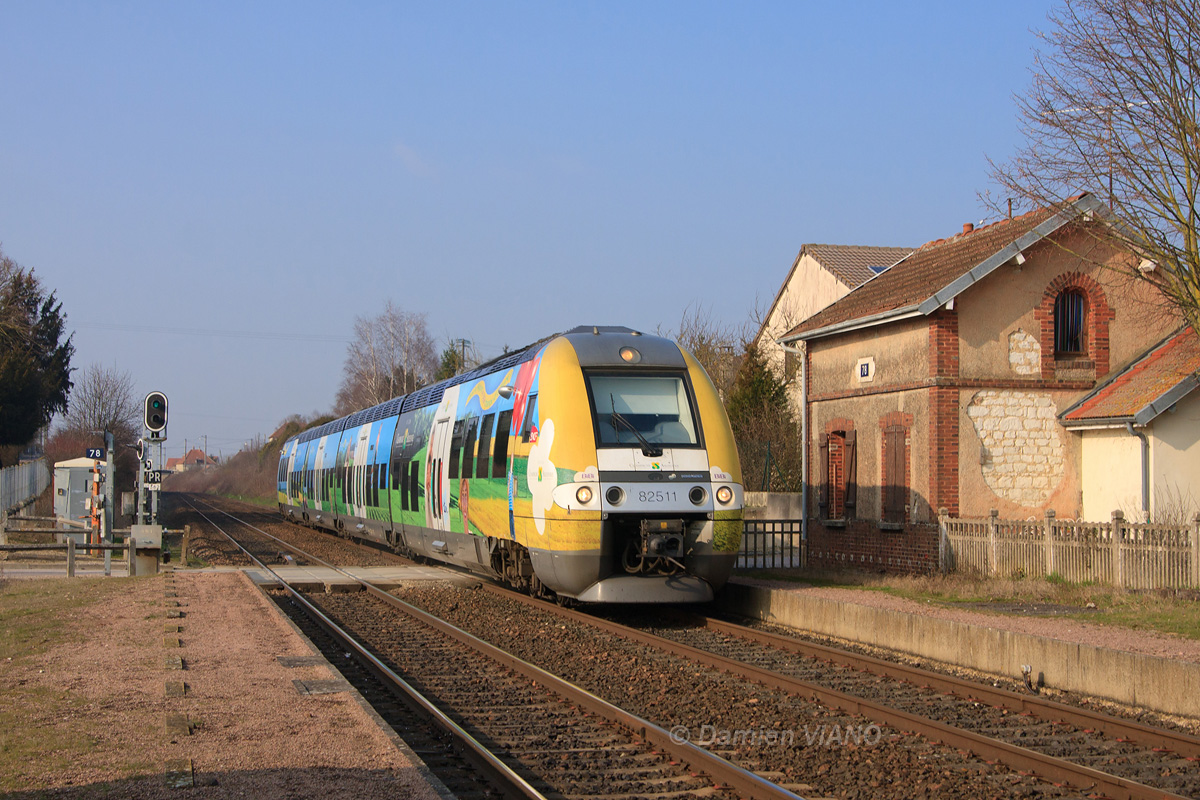 Détails photographie Titre : Bibi Champagne-Ardennes pour un IC Paris - Culmont Description : Le B 82511/82512 franchit à toute vitesse l'ancienne gare de St-Mesmin, entre Romilly et Troyes, assurant l'IC 1547 Paris-Est - Culmont-Chalindrey. Date de la prise de vue : mardi 01 mars 2011 - 15h27 (heure locale) Date de mise en ligne : dimanche 01 avril 2012 - 00h18 Numéro de la photo : 4465 Dimensions de la photo : 1200x800 Taille du fichier : 451.36 Ko Cette photo appartient aux types de photo suivants : Trains en ligne Cette photo présente les éléments visuels suivants : Conditions météo - Jour Éléments ferroviaires - Pancarte kilométrique/hectométrique/PN Éléments ferroviaires - Passage à niveau Éléments ferroviaires - Signalisation lumineuse Notes du photographe : Un grand merci à Aurélien G. pour le transport ! |