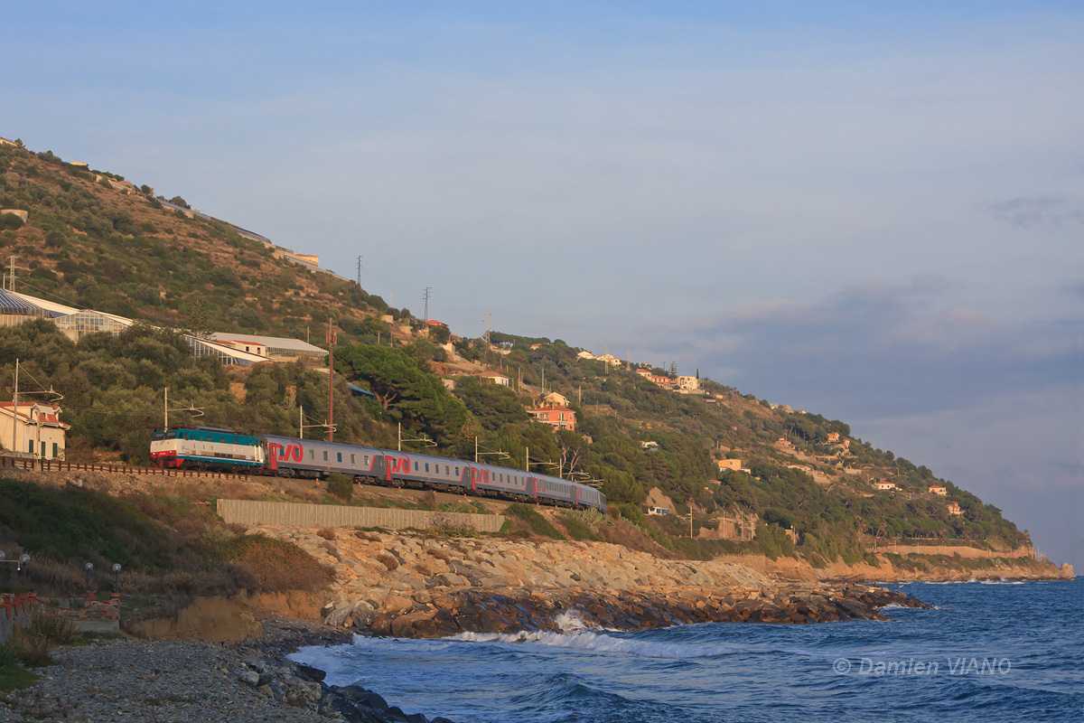 Détails photographie Titre : Le train Russe à San-Lorenzo Description : Alors que l'ombre de la colline s'apprête à envahir la voie ferrée, le train 16/17 reliant la capitale Russe à la Côte d'Azur en une cinquantaine d'heures est photographié le long de la Méditerranée, après son arrêt-circulation à Imperia, sur la commune de San-Lorenzo-al-Mare. La E 444-049 assure la traction du train jusqu'à Ventimiglia, où une locomotive SNCF prendra le relais. Date de la prise de vue : samedi 19 novembre 2011 - 16h04 (heure locale) Date de mise en ligne : dimanche 01 avril 2012 - 20h22 Numéro de la photo : 4474 Dimensions de la photo : 1200x800 Taille du fichier : 367.72 Ko Cette photo appartient aux thèmes suivants : Grands Express Transeuropéens Cette photo appartient aux types de photo suivants : Trains en ligne Cette photo présente les éléments visuels suivants : Conditions météo - Ciel très nuageux Conditions météo - Crépuscule/Aube Conditions météo - Jour Paysage - Mer/Lac/Étang Paysage - Montagne/Colline/Falaise Paysage - Village/Maisons |