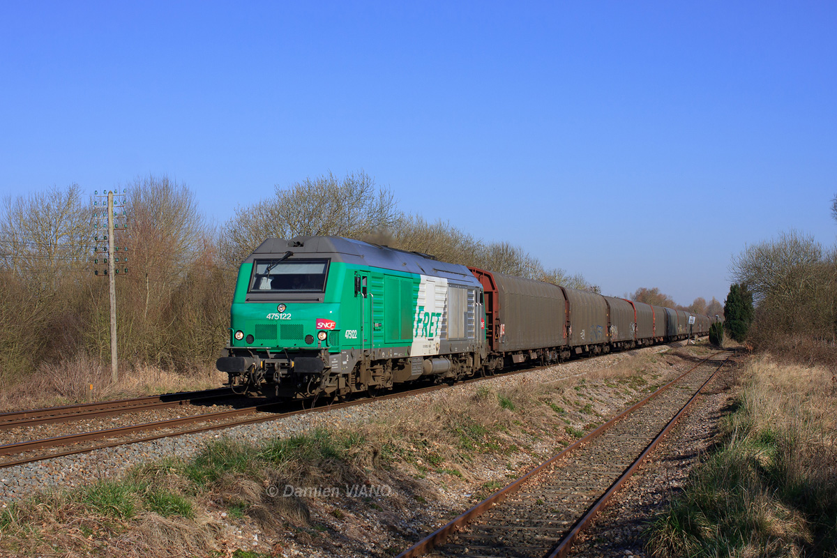 Détails photographie Titre : Train de bâchés sur la Côte d'Opale Description : La BB 75122 est vue en sortie de Conchil-le-Temple avec une rame de wagons bâchés à destination de Longueau. Date de la prise de vue : lundi 07 mars 2011 - 10h51 (heure locale) Date de mise en ligne : vendredi 13 avril 2012 - 10h42 Numéro de la photo : 4498 Dimensions de la photo : 1200x800 Taille du fichier : 475.75 Ko Cette photo appartient aux types de photo suivants : Trains en ligne Cette photo présente les éléments visuels suivants : Conditions météo - Jour Éléments ferroviaires - Pancarte/Tableau Éléments ferroviaires - Poteaux télégraphiques Notes du photographe : Un grand merci à Aurélien G. pour le transport ! |