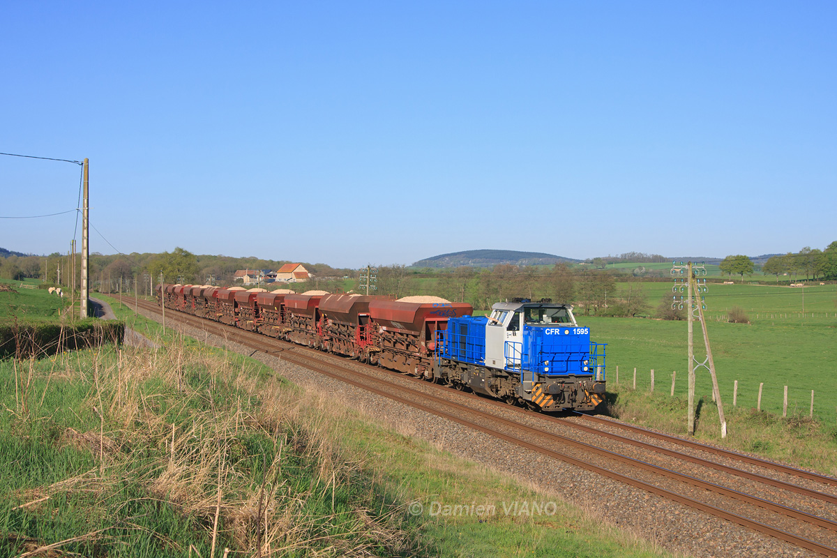 Détails photographie Titre : Train de ballast pour Troyes Description : La G 1000 n° 1595 de CFR Morvan est en tête d'une rame de trémies chargées de ballast, à destination de Troyes. Le convoi est vu à quelques kilomètres d'Etang-sur-Arroux. Date de la prise de vue : dimanche 10 avril 2011 - 09h13 (heure locale) Date de mise en ligne : lundi 16 avril 2012 - 15h13 Numéro de la photo : 4514 Dimensions de la photo : 1200x800 Taille du fichier : 451.03 Ko Cette photo appartient aux types de photo suivants : Trains en ligne Cette photo présente les éléments visuels suivants : Conditions météo - Jour Éléments ferroviaires - Poteaux télégraphiques Paysage - Montagne/Colline/Falaise Paysage - Village/Maisons Notes du photographe : L'opérateur ferroviaire de proximité CFR Morvan a été choisi par SNCF Infra pour approvisionner en rames de ballast le chantier de renouvellement de voie se déroulant sur la ligne 4, à l'est de Troyes, du 28 février au 10 juin 2011. |