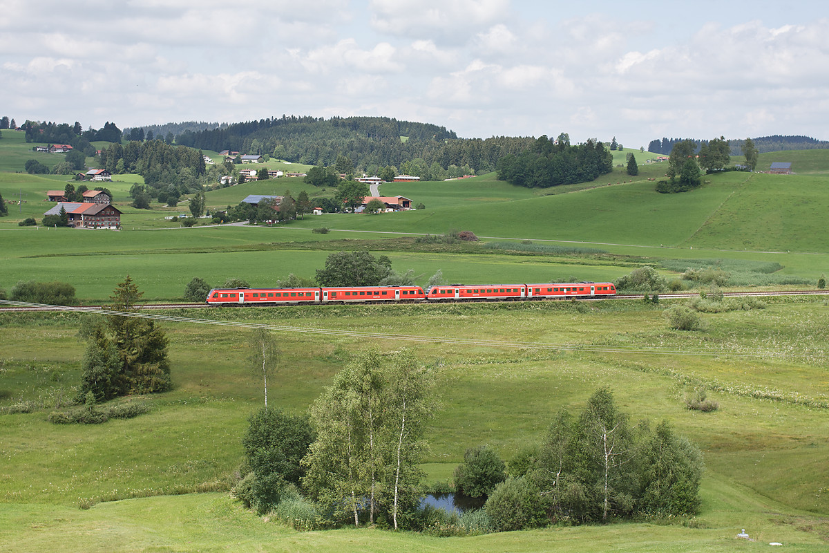 Détails photographie Titre : RE 3987 à Zell sur la ligne de l'Allgäu Description : Un couplage d'autorails 612 forment le train RE 3987 Ulm Röthenbach, vu ici au pied du hameau de Zell, au nord d'Oberstaufen. Date de la prise de vue : vendredi 15 juillet 2011 - 11h52 (heure locale) Date de mise en ligne : mercredi 02 mai 2012 - 12h55 Numéro de la photo : 4541 Dimensions de la photo : 1200x800 Taille du fichier : 405.93 Ko Cette photo appartient aux types de photo suivants : Trains en ligne Cette photo présente les éléments visuels suivants : Conditions météo - Ciel très nuageux Conditions météo - Jour Paysage - Mer/Lac/Étang Paysage - Montagne/Colline/Falaise Paysage - Village/Maisons Notes du photographe : La coin photo est depuis le hameau de Zell, accessible en 30 minutes par sentier balisé depuis Oberstaufen. |
