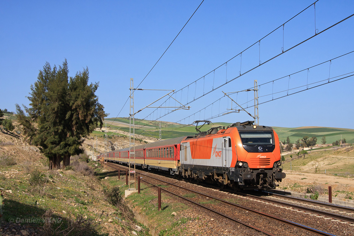 Détails photographie Titre : E 1403 et train Marrakech - Fès à Bab Tisra Description : La Prima II E 1403 débouche du tunnel à la sortie du défilé de Bab Tisra, peu après avoir desservi la gare de Sidi Kacem. Date de la prise de vue : lundi 26 mars 2012 - 14h51 (heure locale) Date de mise en ligne : mardi 22 mai 2012 - 09h20 Numéro de la photo : 4603 Dimensions de la photo : 1200x800 Taille du fichier : 478.9 Ko Cette photo appartient aux types de photo suivants : Trains en ligne Cette photo présente les éléments visuels suivants : Conditions météo - Jour Éléments ferroviaires - Pancarte/Tableau Paysage - Montagne/Colline/Falaise Notes du photographe : Ce train circulait sous la marche N° 604 jusqu'à Casablanca Voyageurs (12.10 / 12.15). |