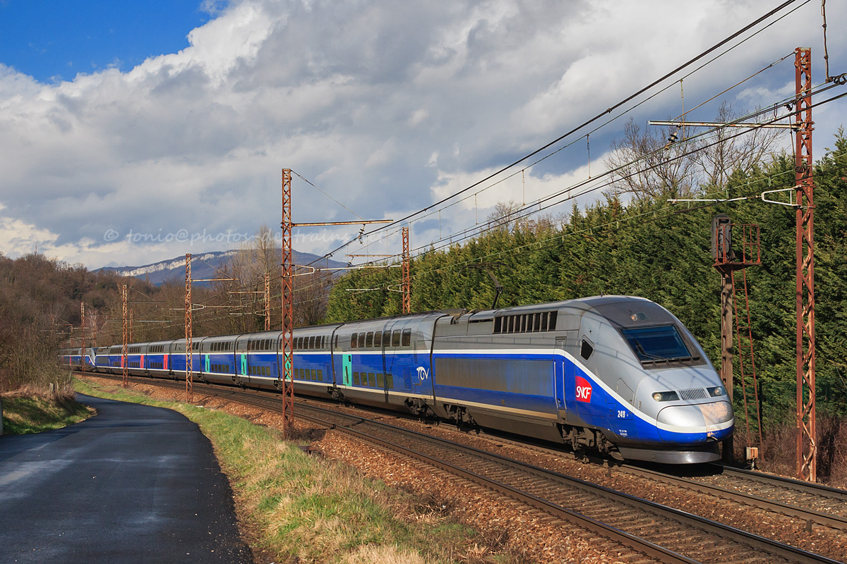 Détails photographie Titre : TGV 6439 Paris-Gare-de-Lyon - Bourg-Saint-Maurice Description : Assuré par deux rames TGV Duplex en UM, le TGV 6439 Paris-Gare-de-Lyon - Bourg-Saint-Maurice passe à Tresserve. Date de la prise de vue : samedi 24 février 2007 - 14h33 (heure locale) Date de mise en ligne : samedi 26 mai 2007 - 13h02 Numéro de la photo : 460 Dimensions de la photo : 1200x800 Taille du fichier : 516.25 Ko Cette photo appartient aux thèmes suivants : Pointes d'hiver savoyardes 2006-2007 Cette photo appartient aux types de photo suivants : Trains en ligne Cette photo présente les éléments visuels suivants : Conditions météo - Ciel très nuageux Conditions météo - Jour Éléments ferroviaires - Caténaire 1.5 kV Éléments ferroviaires - Signalisation lumineuse Paysage - Montagne/Colline/Falaise |