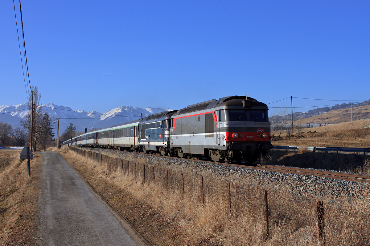 Détails photographie Titre : UM de 67300 sur un Lunéa supplémentaire Description : Le train 5815 reliant Paris à Briançon et circulant un dimanche de pointes, est vu du côté de Châteauroux-les-Alpes. En tête, deux BB 67300 ! Date de la prise de vue : dimanche 26 février 2012 - 09h16 (heure locale) Date de mise en ligne : mercredi 30 mai 2012 - 10h31 Numéro de la photo : 4625 Dimensions de la photo : 1200x800 Taille du fichier : 444.23 Ko Cette photo appartient aux thèmes suivants : Pointes d'hiver briançonnaises 2011-2012 Cette photo appartient aux types de photo suivants : Trains en ligne Cette photo présente les éléments visuels suivants : Conditions météo - Contre-jour Conditions météo - Jour Conditions météo - Neige Paysage - Montagne/Colline/Falaise Notes du photographe : Grand merci à Jéjé pour le transport ! |