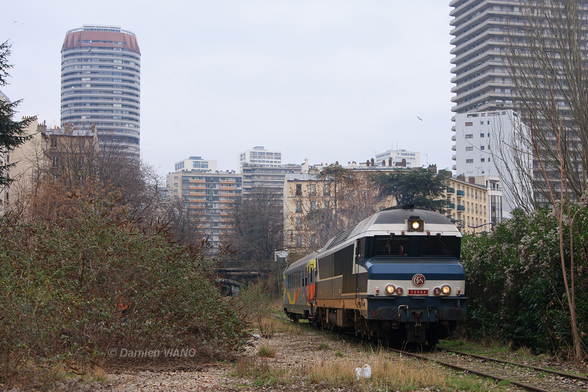 Détails photographie Titre : On rentre à la maison ! Description : Après avoir rentré les quatre voitures Corail dans leur nouvel abri, dans le secteur de la Place de Rungis, le CC 72084 repart avec la voiture "Club 32" en direction de Boulevard Victor, où il sortira de la Petite Ceinture, et rentrera à Juvisy via la ligne C du RER. Date de la prise de vue : mercredi 18 janvier 2012 - 14h21 (heure locale) Date de mise en ligne : mercredi 30 mai 2012 - 10h39 Numéro de la photo : 4627 Dimensions de la photo : 1200x800 Taille du fichier : 525.71 Ko Cette photo appartient aux thèmes suivants : La CC 72084 dans les entrailles de Paris ! Cette photo appartient aux types de photo suivants : Trains en ligne Cette photo présente les éléments visuels suivants : Conditions météo - Ciel très nuageux Conditions météo - Jour Paysage - Pont/Viaduc Notes du photographe : Dans le cadre du projet de "coulée verte", mené par la Ville Paris, sur une section de la ligne de Petite Ceinture, quatre voitures Corail stationnées depuis plusieurs années dans le Tunnel de Vaugirard (15ème arrondissement), et servant de locaux à une association de réinsertion entretenant la végétation aux abords de la ligne, devaient être déplacées sous un autre tunnel dans le secteur de la Place de Rungis (13ème arrondissement), peu après l'ancienne gare de La Glacière-Gentilly. C'est le CC 72084, accompagné de la voiture Club 32 pour le transport des personnalités, qui furent chargés de cette tâche sympathique mais fort délicate, du fait du très mauvais état de la voie. Venu de Juvisy par la ligne du RER C en début de matinée, le convoi s'est engagé sur la Petite Ceinture à la station Boulevard Victor, a refoulé jusqu'à atteindre les voitures à dégarer, puis a refoulé le tout jusqu'au nouveau lieu de garage. Il est ensuite reparti machine en tête jusqu'à Boulevard Victor, fêtant au passage, dans la pure tradition cheminote, le dernier train d'un conducteur, puis est parti jusqu'à Trappes, toujours via le RER C. Après rebroussement, le convoi est rentré sur Juvisy via Versailles et Massy. J'adresse un grand merci aux agents qui ont réussi à monter cette folle journée, ainsi qu'à Jean-Louis Poggi pour le transport à travers le dédale des rues Parisiennes ! |
