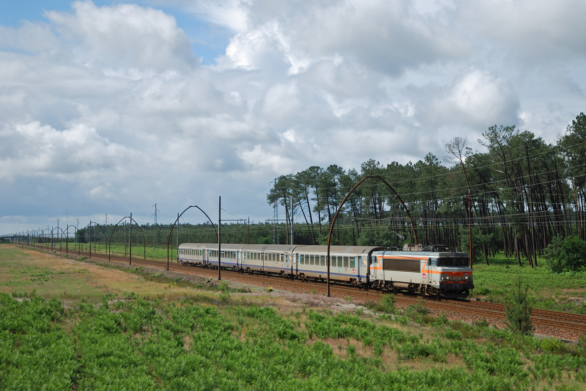 Détails photographie Titre : TER Aquitaine tracté Tarbes - Bordeaux Description : Mené par la BB 7409, ce TER parti de Tarbes approche de la gare d'Ychoux. Date de la prise de vue : mardi 12 juin 2012 - 10h58 (heure locale) Date de mise en ligne : lundi 09 juillet 2012 - 09h31 Numéro de la photo : 4726 Dimensions de la photo : 1200x800 Taille du fichier : 570.45 Ko Cette photo appartient aux types de photo suivants : Trains en ligne Cette photo présente les éléments visuels suivants : Conditions météo - Ciel très nuageux Conditions météo - Jour Éléments ferroviaires - Caténaire 1.5 kV Midi Éléments ferroviaires - Ogives |