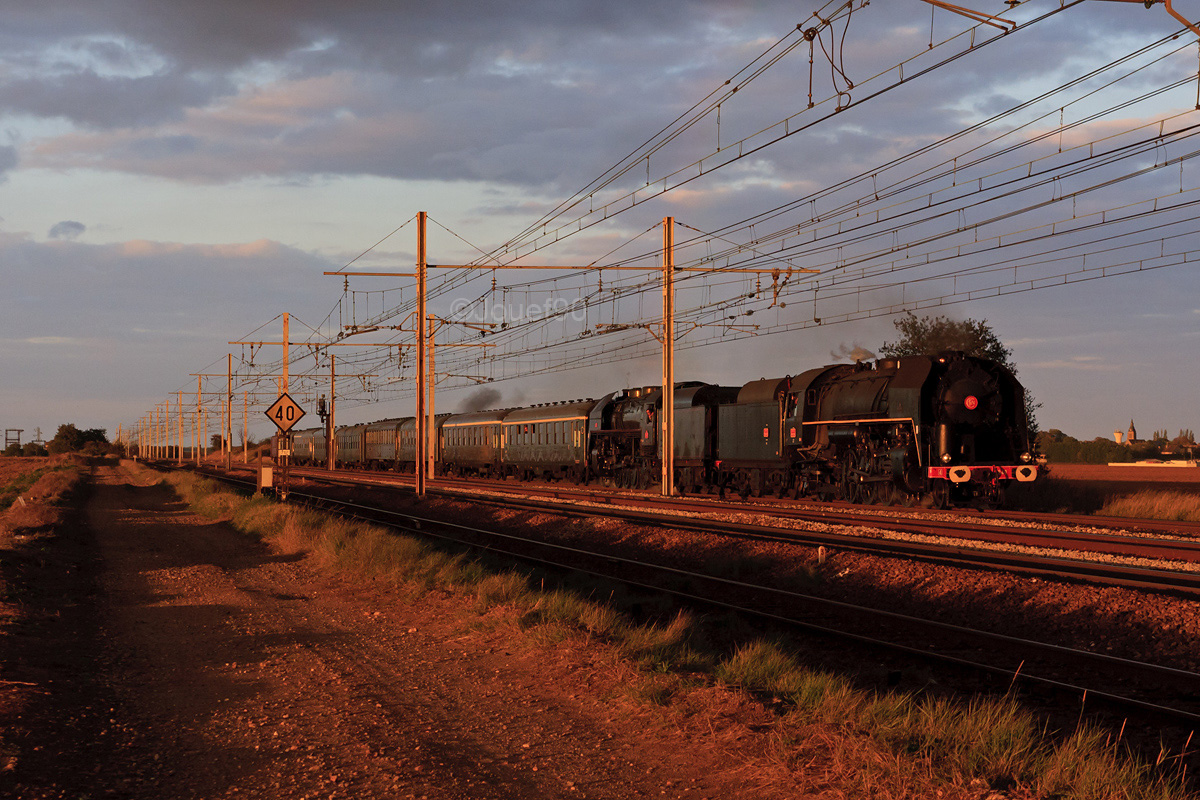 Détails photographie Titre : DT de Vapeur sur le PO Description : De retour du grand rassemblement organisé par l'AJECTA à l'occasion des 100 ans de la rotonde de Longueville, les 141 R 840 et 1126 assurent en double traction le retour de ce train spécial entre Valenton et Orléans. Le train circule alors avec un peu de retard suite à la détection d'une boite chaude (un retard bénéfique qui permettra à la composition de passer finalement au soleil, alors qu'à l'heure théorique celle-ci aurait été à l'ombre...). Date de la prise de vue : lundi 19 septembre 2011 - 19h39 (heure locale) Date de mise en ligne : samedi 21 juillet 2012 - 09h45 Numéro de la photo : 4755 Dimensions de la photo : 1200x800 Taille du fichier : 522.88 Ko Cette photo appartient aux thèmes suivants : La rotonde de Longueville fête ses 100 ans ! Cette photo appartient aux types de photo suivants : Trains en ligne Cette photo présente les éléments visuels suivants : Conditions météo - Ciel très nuageux Conditions météo - Crépuscule/Aube Conditions météo - Jour Éléments ferroviaires - Caténaire 1.5 kV Éléments ferroviaires - Matériel plaqué (en relief) Éléments ferroviaires - Pancarte/Tableau Éléments ferroviaires - Signalisation lumineuse Paysage - Clocher/Château Notes du photographe : Composition du train : DEV AO A8 (myfi 4136) DEV AO A8 (myfi 1180) B10 OCEM face lisse, origine État (B10 myfi 34915) B11 Bacalan (ex-C11) (B11 myfi 54763) USI B10 (myfi 83047) USI B10 (myfi 8.3039) DEV AO A4c4B5c5 (508744-37034-9) A4D PLM (508781-30415-1) Allège Postal (508700-37965-6) ---------- Cette photo a été prise dans le cadre des festivités organisées à l'occasion du centenaire de la rotonde de Longueville, lors des journées du Patrimoine qui se sont déroulées les 17 et 18 septembre 2011. Ce rassemblement de locomotives à vapeur en chauffe est le plus important que l'on ait pu voir en France, depuis la fin de la vapeur au début des années 1970. Plusieurs locomotives sont venues de toute la France (Toulouse, Clermont-Ferrand, Limoges, Orléans...) pour participer aux festivités, et organiser des trains spéciaux sur la célèbre Ligne 4, ainsi que sur l'antenne de Provins. Un grand merci à l'AJECTA pour cette organisation considérable, ainsi qu'à toutes les autres associations présentes, et aux différents service de la SNCF qui ont permis la réalisation de ces circulations (ainsi qu'à Damien V. pour le transport) ! |