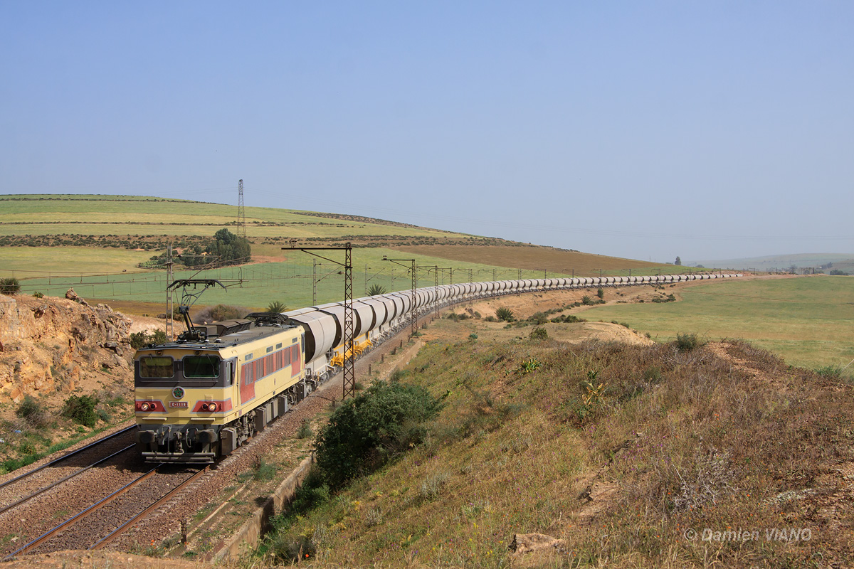 Détails photographie Titre : Train de phosphates Khouribga - Casa Description : Passage d'un train de phosphates chargé, peu avant Settat, E 1118 Hitachi en tête. Date de la prise de vue : mardi 27 mars 2012 - 14h53 (heure locale) Date de mise en ligne : lundi 23 juillet 2012 - 10h13 Numéro de la photo : 4768 Dimensions de la photo : 1200x800 Taille du fichier : 449.45 Ko Cette photo appartient aux types de photo suivants : Trains en ligne Cette photo présente les éléments visuels suivants : Conditions météo - Jour Paysage - Montagne/Colline/Falaise |