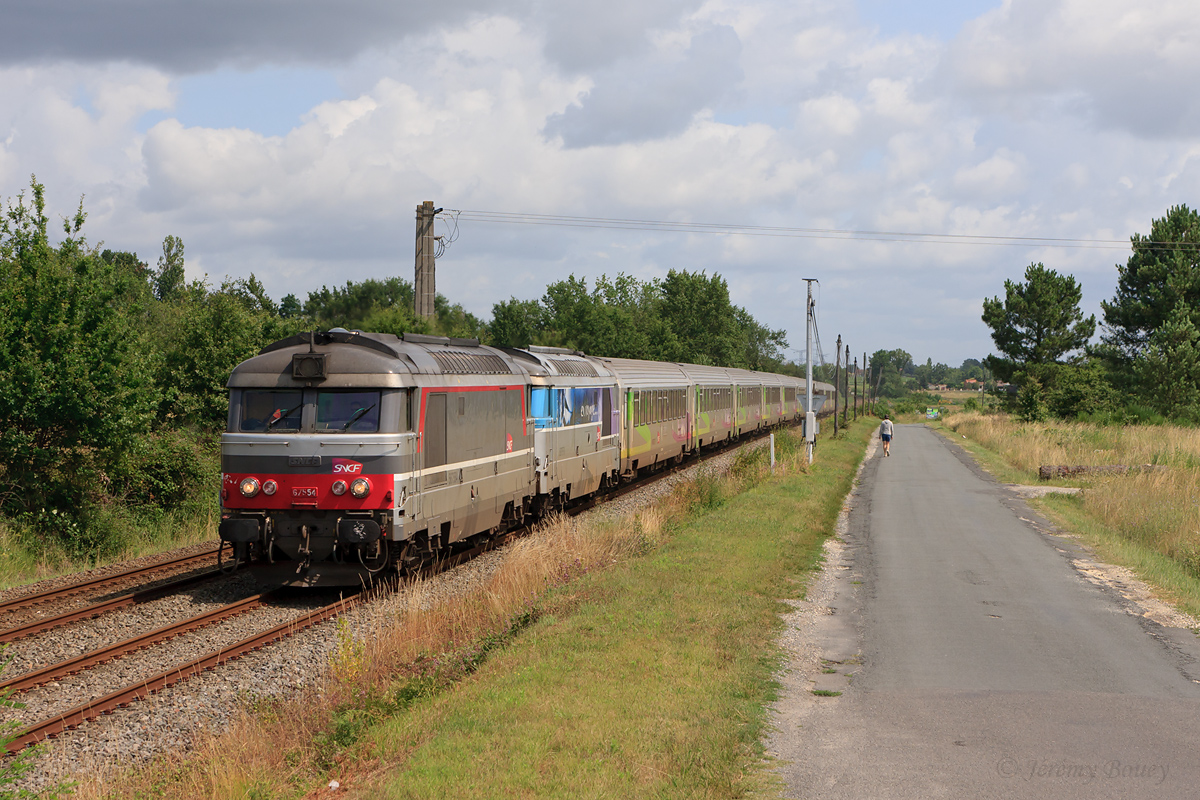 Détails photographie Titre : IC 3829 Nantes - Bordeaux entre soleil et nuages ! Description : En ce 14 Juillet 2012, l'Intercités supplémentaire 3829 Nantes - Bordeaux est vu à Saint-André-de-Cubzac, BB 67554 et BB 67576 en tête. Son retard lui aura valu de passer sous cette belle éclaircie. Date de la prise de vue : samedi 14 juillet 2012 - 12h04 (heure locale) Date de mise en ligne : mardi 07 août 2012 - 11h10 Numéro de la photo : 4802 Dimensions de la photo : 1200x800 Taille du fichier : 640.28 Ko Cette photo appartient aux types de photo suivants : Trains en ligne Cette photo présente les éléments visuels suivants : Conditions météo - Ciel très nuageux Conditions météo - Jour |