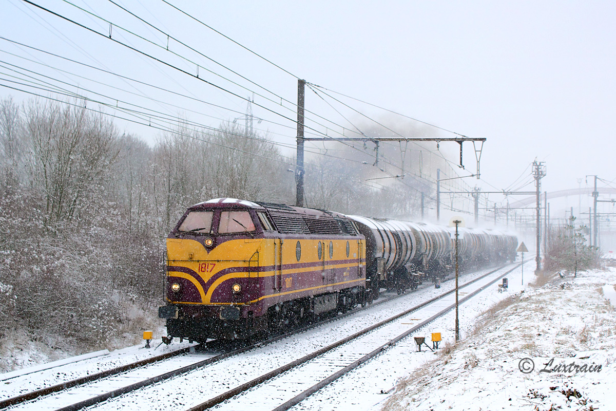 Détails photographie Titre : CFL 1817 assure un train d'essence pour Bertrange Description : En hiver 2011-2012, les diésels lourds de la série 1800 restent indispensables pour CFL Cargo. Étant aussi les seules locomotives diésel CFL Cargo à être autorisées en Belgique, elles assurent aussi des trains domestiques. Les trains de ravitaillement des dépôts pétroliers de Bertrange restent réservés aux seules CC CFL Cargo. Date de la prise de vue : lundi 30 janvier 2012 - 12h21 (heure locale) Date de mise en ligne : lundi 13 août 2012 - 14h08 Numéro de la photo : 4816 Dimensions de la photo : 1200x800 Taille du fichier : 520.05 Ko Cette photo appartient aux types de photo suivants : Trains en ligne Cette photo présente les éléments visuels suivants : Conditions météo - Jour Conditions météo - Neige Notes du photographe : Sur la ligne 50, contrairement au reste du réseau CFL, les trains circulent traditionnellement à gauche. Le train ci-contre circulait à contre-voie. |