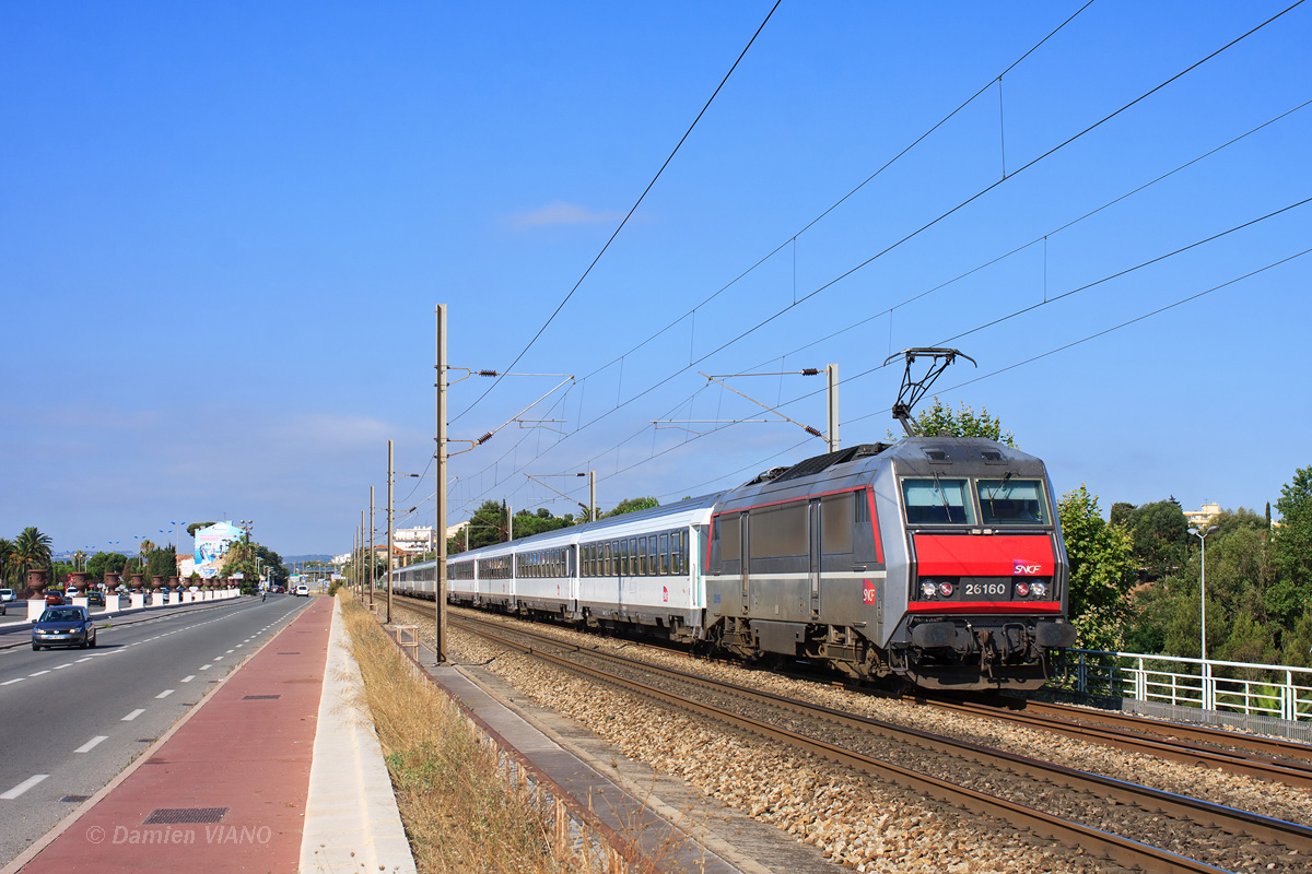 Détails photographie Titre : BB 26160 sur l'Alsace-Riviera Description : La BB 26160 emmène de Marseille à Nice l'Intercités de Nuit 4283 en provenance de Strasbourg et Luxembourg. Le convoi est vu à la sortie de St-Laurent-du-Var, sur le pont Napoléon III, qui faisait jadis office de frontière du Comté de Nice. Date de la prise de vue : mardi 07 août 2012 - 09h47 (heure locale) Date de mise en ligne : vendredi 28 septembre 2012 - 10h51 Numéro de la photo : 4887 Dimensions de la photo : 1200x800 Taille du fichier : 413.41 Ko Cette photo appartient aux types de photo suivants : Trains en ligne Cette photo présente les éléments visuels suivants : Conditions météo - Jour Éléments ferroviaires - Caténaire 25 kV |