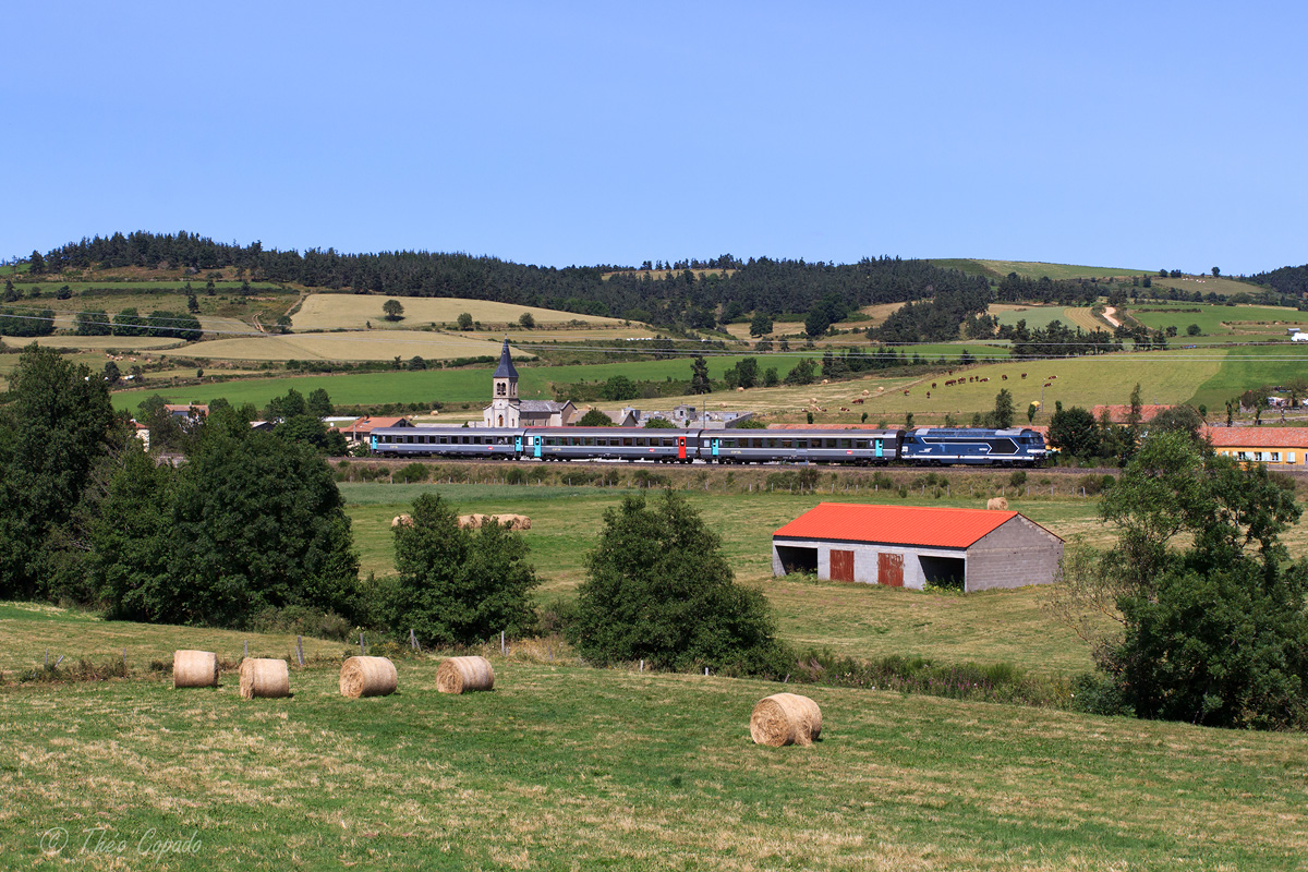 Titre : Intercités de l'après midi Description : Cadre paisible et verdoyant en cet après-midi d'été pour l'Intercités "Le Cévenol", vu entre Langogne et La Bastide alors qu'il continue sa descente vers le sud du pays, peut être pour l'une des dernière fois ? Date de la prise de vue : lundi 16 juillet 2012 - 15h56 (heure locale) Date de mise en ligne : mercredi 03 octobre 2012 - 21h16 Numéro de la photo : 4893 Dimensions de la photo : 1200x800 Taille du fichier : 509.58 Ko Cette photo appartient aux types de photo suivants : Trains en ligne Cette photo présente les éléments visuels suivants : Conditions météo - Jour Paysage - Bottes de paille/foin Paysage - Clocher/Château Paysage - Montagne/Colline/Falaise Paysage - Village/Maisons Notes du photographe : En décembre 2012, la SNCF souhaite remplacer la rame Corail par un AGC, totalement inconfortable et inadapté pour un trajet de plus de 7h, et limiter le parcours à Nîmes. Contre cette mesure visant à enterrer une des dernières relations nationales non TGV encore existante, une pétition est en ligne à cette adresse : http://defense-promotion-cevenol.fr/site/Signez-la-petition |