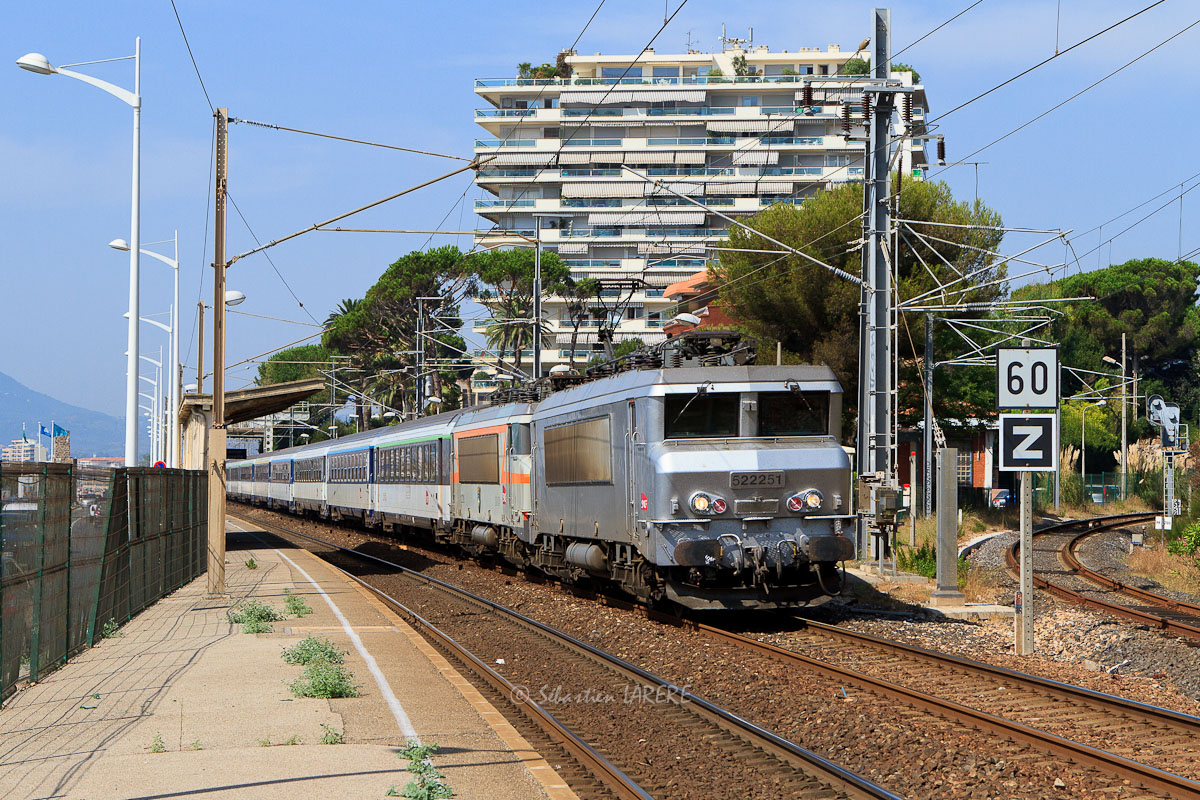 Détails photographie Titre : BB 22251 sur l'Alsace Riviera Description : Traversant la gare de Cannes-la-Bocca, la BB 22251 en livrée Fantôme est en charge des Intercités de Nuit n° 4283 et n° 4749 en provenance de Strasbourg-Ville et Luxembourg et à destination de Nice-Ville. La BB 22319 est, elle, acheminée en véhicule. La voie qui se dirige vers la droite est la ligne Cannes - Grasse qui débute à cet endroit. Date de la prise de vue : vendredi 24 août 2012 - 11h38 (heure locale) Date de mise en ligne : mardi 13 novembre 2012 - 15h45 Numéro de la photo : 4979 Dimensions de la photo : 1200x800 Taille du fichier : 388.9 Ko Cette photo appartient aux types de photo suivants : Trains en gare Cette photo présente les éléments visuels suivants : Conditions météo - Jour Éléments ferroviaires - Caténaire 25 kV Éléments ferroviaires - Pancarte/Tableau Paysage - Village/Maisons |