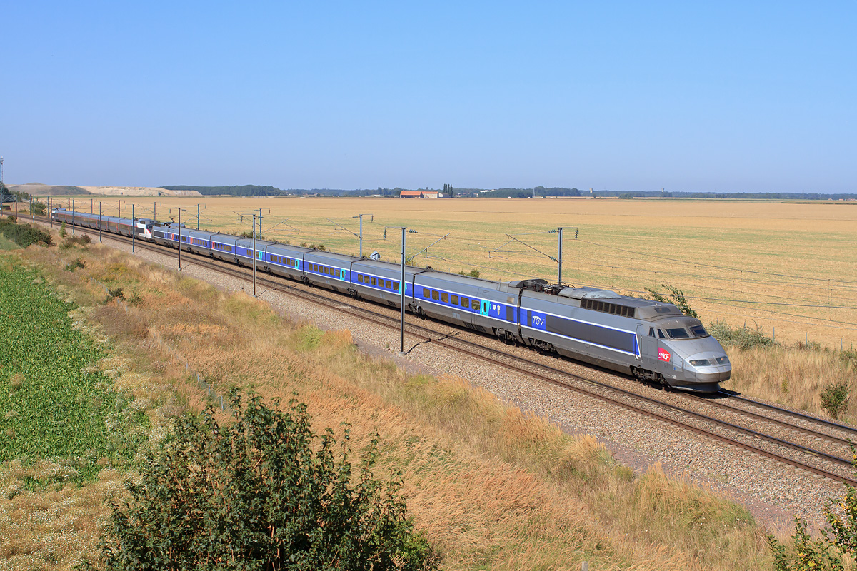 Détails photographie Titre : UM de de TGV Sud-Est sur LGV Description : Assuré par une UM de TGV Sud-Est, dont le deuxième est en livrée Carmillon, le TGV 9773 Paris - Genève passe à Grisy dans la plaine Seine-et-Marnaise. Date de la prise de vue : dimanche 09 septembre 2012 - 12h28 (heure locale) Date de mise en ligne : mardi 13 novembre 2012 - 15h49 Numéro de la photo : 4980 Dimensions de la photo : 1200x800 Taille du fichier : 566.55 Ko Cette photo appartient aux types de photo suivants : Trains en ligne Cette photo présente les éléments visuels suivants : Conditions météo - Jour Éléments ferroviaires - Caténaire 25 kV |