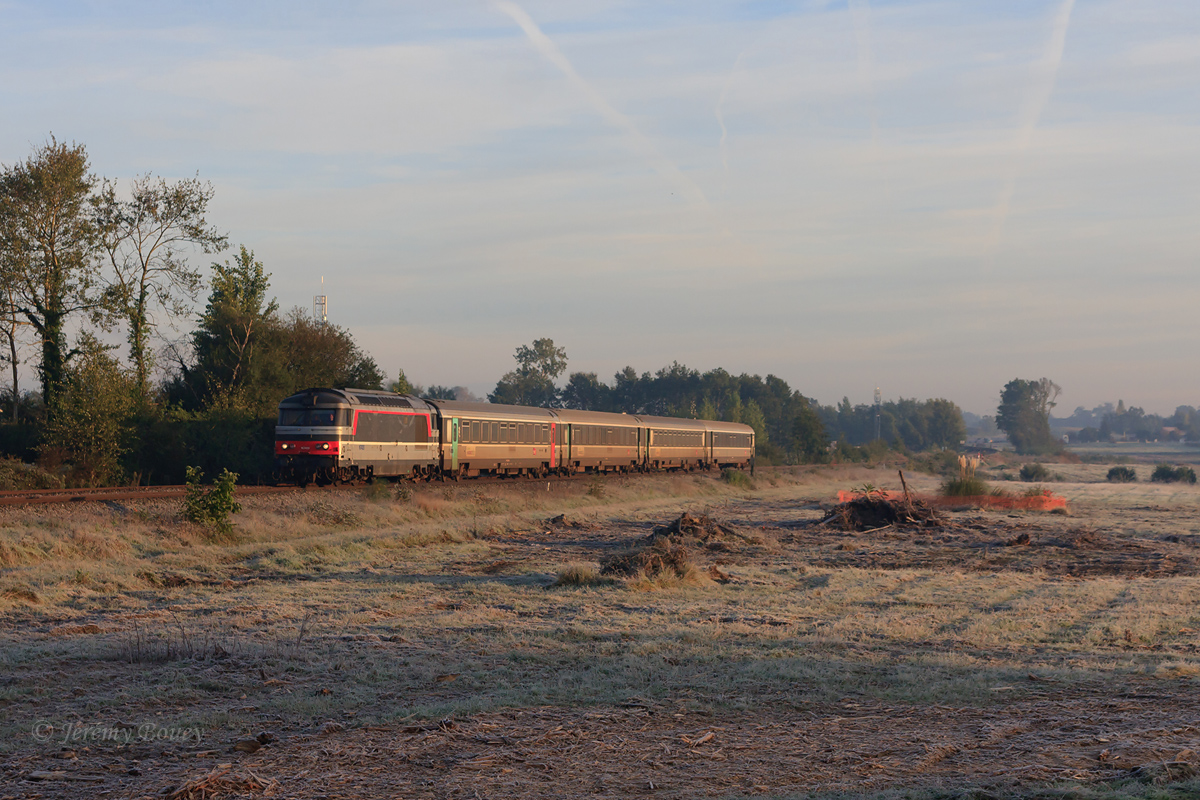 Détails photographie Titre : Intercités 13899 La Rochelle - Bordeaux givré ! Description : Le lendemain du changement d'heure, l'Intercités 13899 La Rochelle - Bordeaux-St-Jean, BB 67420 en tête, est vu quelques minutes avant son arrêt à St-André-de-Cubzac, sous cette atmosphère glacée... Date de la prise de vue : lundi 29 octobre 2012 - 08h12 (heure locale) Date de mise en ligne : dimanche 02 décembre 2012 - 15h27 Numéro de la photo : 5006 Dimensions de la photo : 1200x800 Taille du fichier : 592.42 Ko Cette photo appartient aux types de photo suivants : Trains en ligne Cette photo présente les éléments visuels suivants : Conditions météo - Crépuscule/Aube Conditions météo - Givre Conditions météo - Jour |