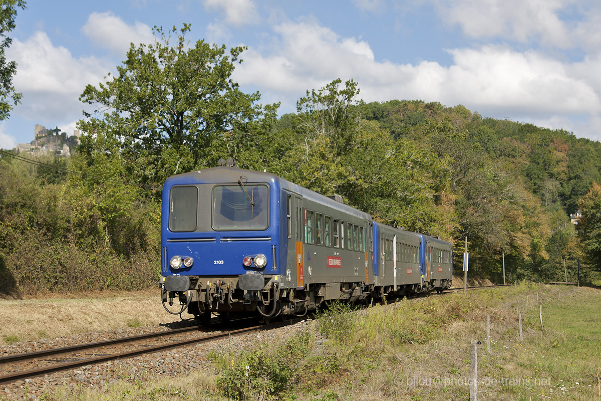 Détails photographie Titre : X2100 pour Rodez Description : Non loin de Turenne, l'X 2103 et 2130 relient Brive à Rodez au TER 870159. Date de la prise de vue : mercredi 19 septembre 2012 - 11h43 (heure locale) Date de mise en ligne : lundi 17 décembre 2012 - 14h09 Numéro de la photo : 5060 Dimensions de la photo : 1200x800 Taille du fichier : 655.64 Ko Cette photo appartient aux types de photo suivants : Trains en ligne Cette photo présente les éléments visuels suivants : Conditions météo - Jour Éléments ferroviaires - Pancarte/Tableau Paysage - Clocher/Château |