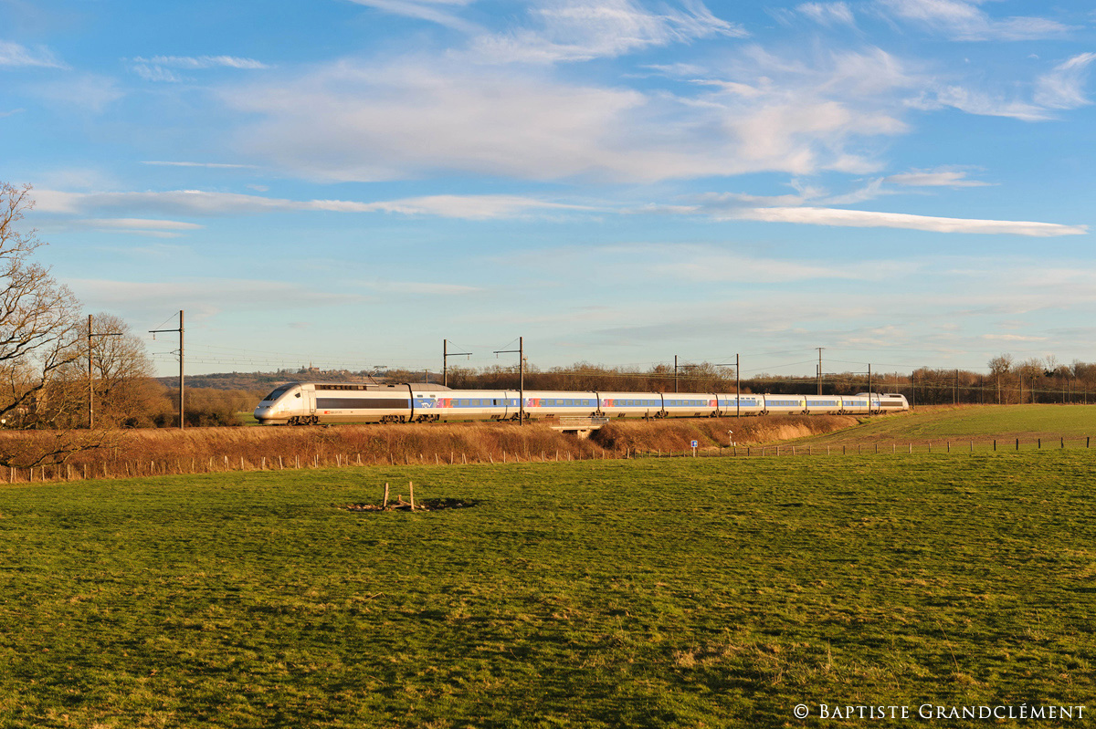Détails photographie Titre : TGV Lyria pour Lille Description : Ce TGV POS arrivant de Brig vient de dévaller la Bosse sans arrêt et continue sur Dijon, où il marquera un arrêt de service. Le nouveau conducteur amènera ensuite la rame directement sur Lille, le terminus. Une correspondance assurée par Eurostar permet ensuite de rejoindre l'Angleterre. Date de la prise de vue : samedi 29 décembre 2012 - 16h05 (heure locale) Date de mise en ligne : dimanche 13 janvier 2013 - 18h21 Numéro de la photo : 5096 Dimensions de la photo : 1200x799 Taille du fichier : 578.6 Ko Cette photo appartient aux types de photo suivants : Trains en ligne Cette photo présente les éléments visuels suivants : Conditions météo - Crépuscule/Aube Conditions météo - Jour Éléments ferroviaires - Caténaire 1.5 kV Paysage - Clocher/Château |