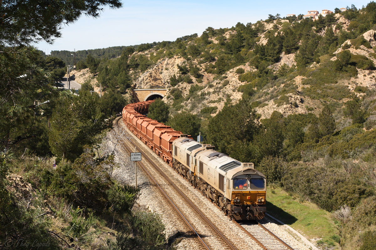 Détails photographie Titre : Pechiney sur la Côte Bleue Description : À la suite d'une interception de voie entre Rognac et Pas-des-Lanciers pour des travaux, le train de bauxite reliant le port minéralier de Fos-sur-Mer à l'usine Pechiney de Gardanne est vu détourné par la Côte Bleue et Marseille. La pousse étant interdite sur la ligne, les deux locomotives se retrouvent en tête de la rame. Date de la prise de vue : dimanche 28 mars 2010 - 12h15 (heure locale) Date de mise en ligne : jeudi 17 janvier 2013 - 14h50 Numéro de la photo : 5110 Dimensions de la photo : 1200x800 Taille du fichier : 515.78 Ko Cette photo appartient aux thèmes suivants : Détournements sur la Côte Bleue (2010) Cette photo appartient aux types de photo suivants : Trains en ligne Cette photo présente les éléments visuels suivants : Conditions météo - Jour Éléments ferroviaires - Pancarte/Tableau Éléments ferroviaires - Tunnel Paysage - Montagne/Colline/Falaise |