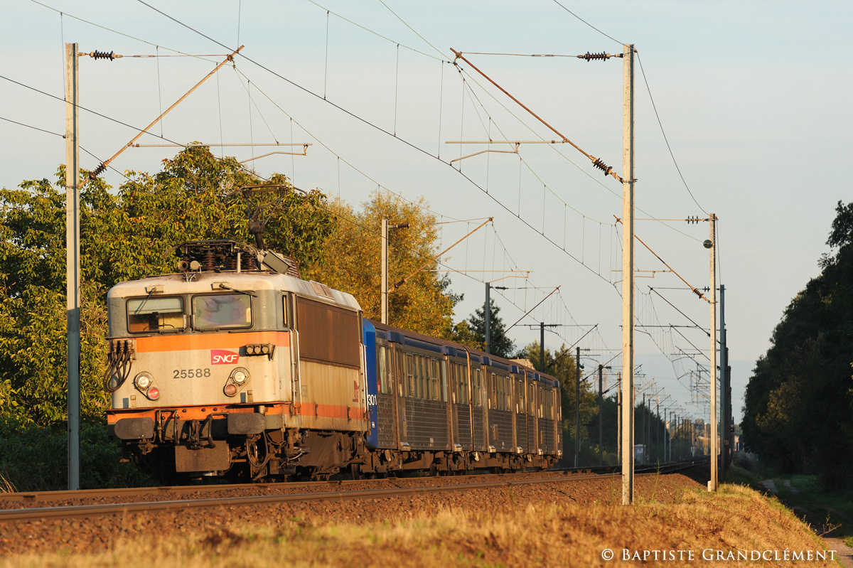 Détails photographie Titre : Coup de zoom sur la 25588 Description : La plus vieille BB 25500 encore en service actuellement (et première de la sous-série des BB 25500 grandes cabines) remorque la RRR 301 et se dirige sur Saverne. Date de la prise de vue : lundi 17 septembre 2012 - 18h41 (heure locale) Date de mise en ligne : vendredi 01 février 2013 - 11h33 Numéro de la photo : 5135 Dimensions de la photo : 1200x799 Taille du fichier : 474.55 Ko Cette photo appartient aux types de photo suivants : Trains en ligne Cette photo présente les éléments visuels suivants : Conditions météo - Crépuscule/Aube Conditions météo - Jour Éléments ferroviaires - Caténaire 25 kV |