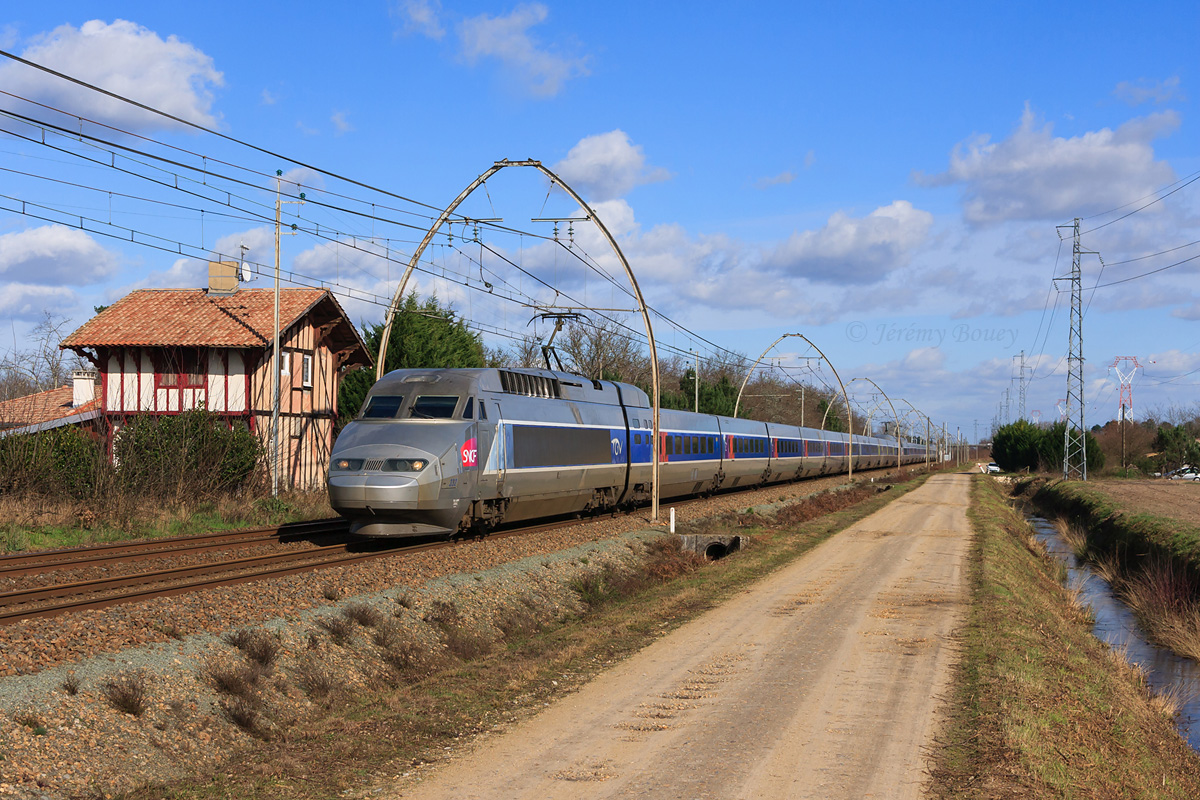 Détails photographie Titre : UM de TGV Atlantique à Pierroton Description : De passage au lieu-dit Pierroton sur la commune de Cestas, les rames Atlantique 332 et 315 assurent les TGV 8533 et 8573, en provenance de Paris-Montparnasse et à destination de Hendaye et Tarbes. C'est à Dax que ces 2 rames se sépareront. Date de la prise de vue : jeudi 07 février 2013 - 14h04 (heure locale) Date de mise en ligne : samedi 23 février 2013 - 21h01 Numéro de la photo : 5186 Dimensions de la photo : 1200x800 Taille du fichier : 512.3 Ko Cette photo appartient aux types de photo suivants : Trains en ligne Cette photo présente les éléments visuels suivants : Conditions météo - Ciel très nuageux Conditions météo - Jour Éléments ferroviaires - Caténaire 1.5 kV Éléments ferroviaires - Ogives Éléments ferroviaires - Pancarte kilométrique/hectométrique/PN Paysage - Cours d'eau/Canal Paysage - Village/Maisons |