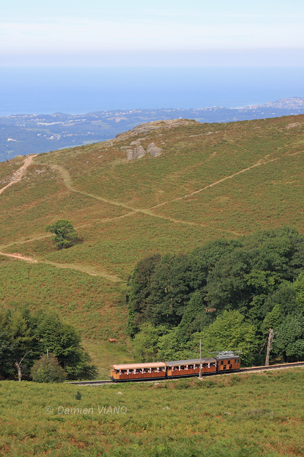 Détails photographie Titre : Ascension du sommet de la Rhune Description : Avec la côte basque en toile de fond, l'une des deux rames du Chemin de Fer de la Rhune en service ce jour-là monte en réversibilité vers le sommet. Date de la prise de vue : mercredi 15 septembre 2010 - 15h41 (heure locale) Date de mise en ligne : dimanche 03 mars 2013 - 20h49 Numéro de la photo : 5207 Dimensions de la photo : 600x900 Taille du fichier : 307 Ko Cette photo appartient aux types de photo suivants : Trains en ligne Cette photo présente les éléments visuels suivants : Conditions météo - Jour Paysage - Mer/Lac/Étang Paysage - Montagne/Colline/Falaise |