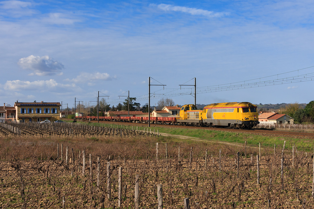 Détails photographie Titre : Poussins thermiques à Portets Description : Les BB 67411 et BB 69290, en livrée Infra, sont vus à Portets sur le MA100 815433 Bordeaux-Hourcade - St-Jory. Date de la prise de vue : jeudi 07 février 2013 - 15h15 (heure locale) Date de mise en ligne : jeudi 07 mars 2013 - 15h59 Numéro de la photo : 5223 Dimensions de la photo : 1200x800 Taille du fichier : 523.07 Ko Cette photo appartient aux types de photo suivants : Trains en ligne Cette photo présente les éléments visuels suivants : Conditions météo - Jour Éléments ferroviaires - Caténaire 1.5 kV Paysage - Vignes Paysage - Village/Maisons |