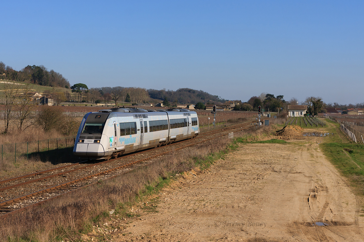 Détails photographie Titre : Le premier XTER blanc Aquitain ! Description : Plus de 3 ans après les BGC, c'est enfin au tour des X 72500 Aquitains d'être pelliculés en blanc. Il s'agit de l'X 72605/06, qui assure là un TER Bergerac - Libourne. Il s'apprête à marquer l'arrêt en gare de St-Émilion, bordée de vignes du célèbre cépage... Date de la prise de vue : mardi 19 février 2013 - 15h18 (heure locale) Date de mise en ligne : vendredi 22 mars 2013 - 21h58 Numéro de la photo : 5264 Dimensions de la photo : 1200x800 Taille du fichier : 652.91 Ko Cette photo appartient aux types de photo suivants : Trains en ligne Cette photo présente les éléments visuels suivants : Conditions météo - Jour Éléments ferroviaires - Pancarte/Tableau Éléments ferroviaires - Passage à niveau Éléments ferroviaires - Rail Double-Champignon Éléments ferroviaires - Signalisation lumineuse Paysage - Montagne/Colline/Falaise Paysage - Vignes Paysage - Village/Maisons |