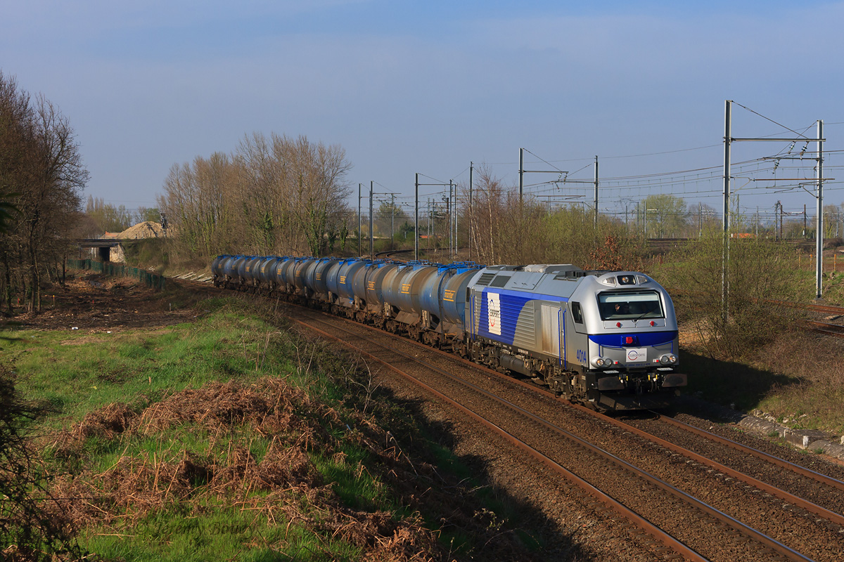 Détails photographie Titre : Euro 4000 entre PO et État... Description : 2 lignes, 2 réseaux... C'est à Ambarès-la-Grave que se croisent les lignes Paris-Austerlitz - Bordeaux-St-Jean (réseau PO) et Saintes - Bordeaux (réseau État) – cette dernière étant d'ailleurs l'ultime partie du deuxième itinéraire Paris - Bordeaux, au départ de Montparnasse et via Chartres. Ici, le raccordement (à droite) permet un itinéraire de substitution à l'artère principale, au Nord de Bordeaux, via la ligne de Saintes - Bordeaux, alors électrifiée sur ses derniers kilomètres... C'est donc au niveau de ce raccordement qu'est vu le train de vin Europorte 60925 Aiffres - Hourcade - Trèbes, avec une belle Euro 4000 à la traction ! Date de la prise de vue : dimanche 31 mars 2013 - 17h54 (heure locale) Date de mise en ligne : lundi 08 avril 2013 - 12h14 Numéro de la photo : 5304 Dimensions de la photo : 1200x800 Taille du fichier : 514.97 Ko Cette photo appartient aux types de photo suivants : Trains en ligne Cette photo présente les éléments visuels suivants : Conditions météo - Jour Éléments ferroviaires - Caténaire 1.5 kV |
