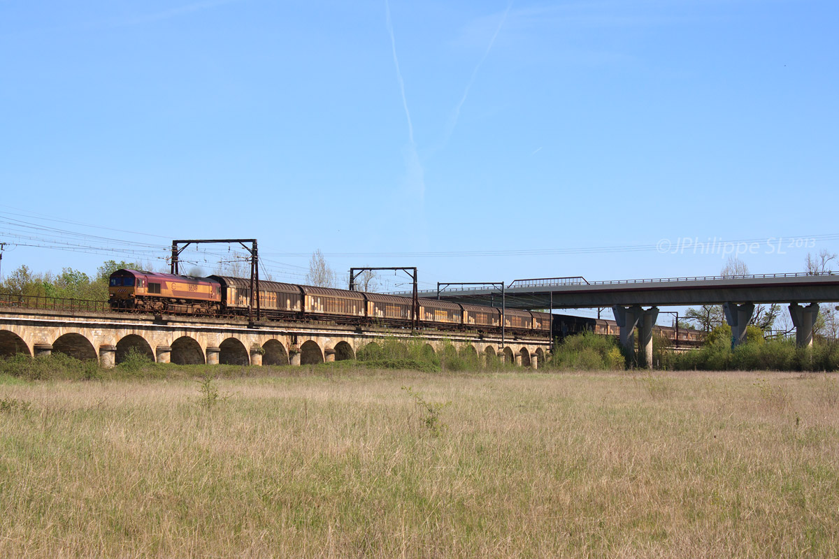 Détails photographie Titre : Class 66 sur le viaduc d'Arveyres Description : La Class 66249 assure la desserte de l'usine à papier de Condat-le-Lardin à destination du port de La Rochelle. Le train est vu passant sur le viaduc des 100 Arches permettant de franchir des terrains marécageux et inondables par la Dordogne. Date de la prise de vue : dimanche 14 avril 2013 - 11h51 (heure locale) Date de mise en ligne : lundi 22 avril 2013 - 17h56 Numéro de la photo : 5344 Dimensions de la photo : 1200x800 Taille du fichier : 297.74 Ko Cette photo appartient aux types de photo suivants : Trains en ligne Cette photo présente les éléments visuels suivants : Conditions météo - Jour Éléments ferroviaires - Caténaire 1.5 kV Paysage - Pont/Viaduc |