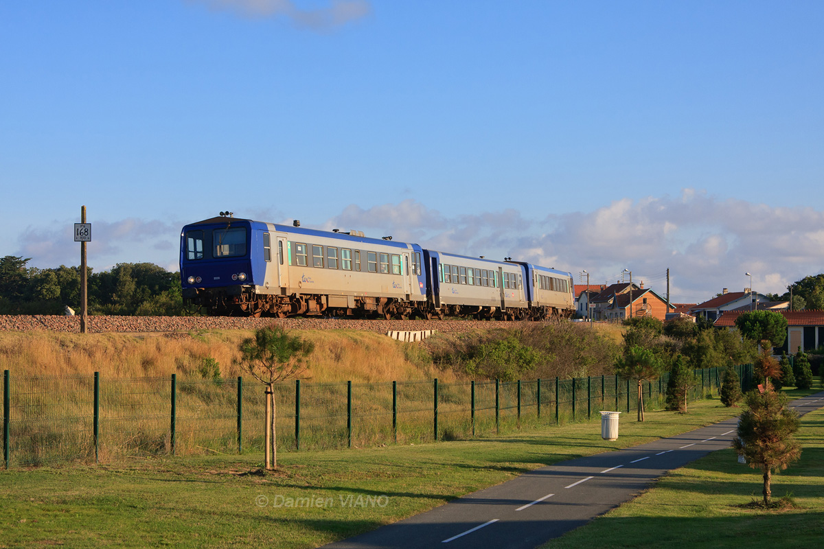 Détails photographie Titre : X 2200 pour ce TER La Rochelle - Bordeaux Description : Les X 2235, XR 6233 et X 2232 assurent le TER 864827 reliant La Rochelle à Bordeaux, vu au petit matin à Châtelaillon-Plage. Date de la prise de vue : dimanche 24 juillet 2011 - 07h56 (heure locale) Date de mise en ligne : mercredi 08 mai 2013 - 15h00 Numéro de la photo : 5396 Dimensions de la photo : 1200x800 Taille du fichier : 398.41 Ko Cette photo appartient aux types de photo suivants : Trains en ligne Cette photo présente les éléments visuels suivants : Conditions météo - Crépuscule/Aube Conditions météo - Jour Éléments ferroviaires - Pancarte kilométrique/hectométrique/PN Éléments ferroviaires - Pancarte/Tableau Paysage - Village/Maisons Notes du photographe : Merci à Jérémy B. pour le transport. |