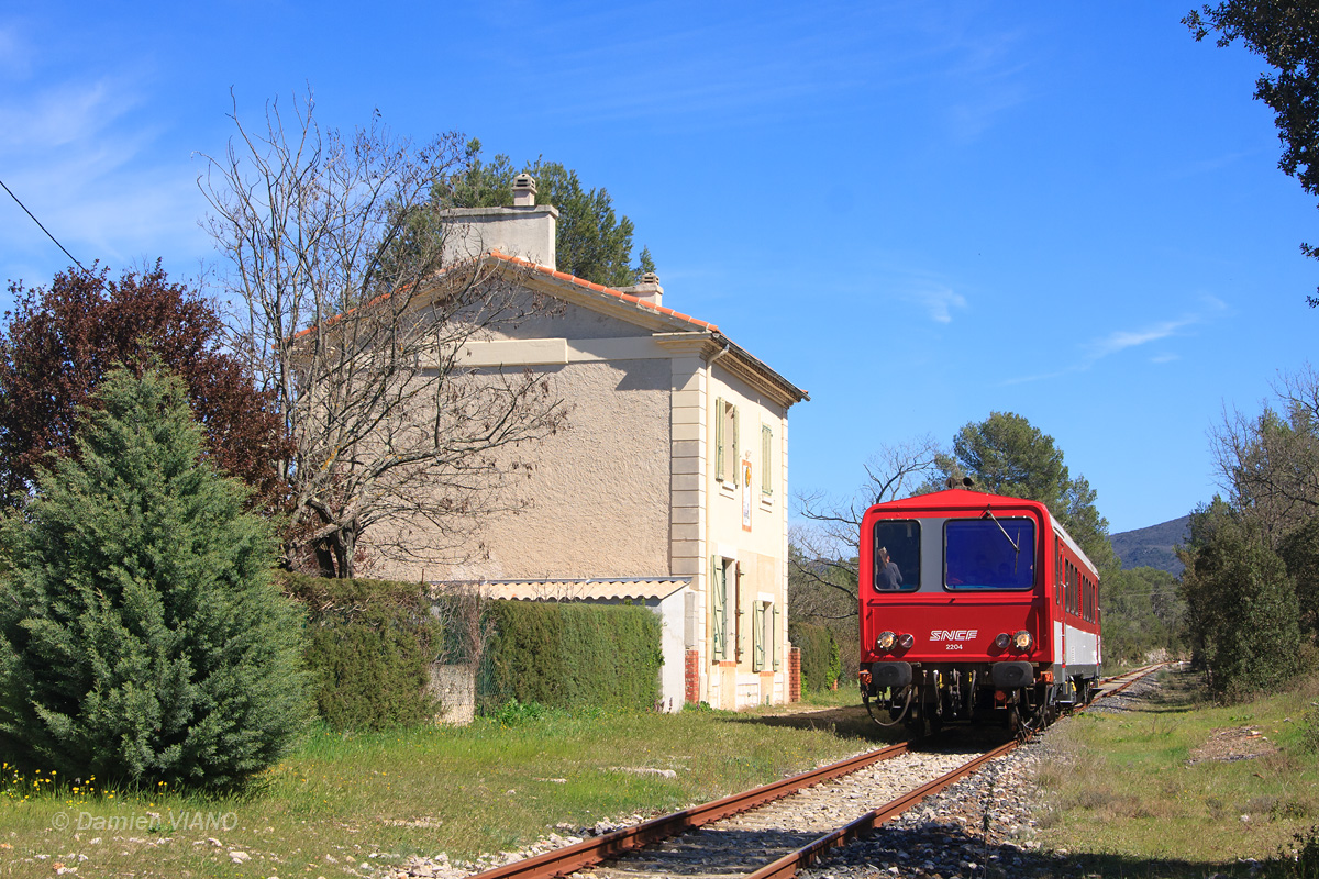 Détails photographie Titre : X 2200 Vermillon et joli BV Description : Vu devant la petite gare de Camps-la-Source, l'X 2204 désormais au service de l'ATTCV s'apprête à repartir vers Brignoles, où se déroule la traditionnelle foire annuelle. Date de la prise de vue : samedi 13 avril 2013 - 15h21 (heure locale) Date de mise en ligne : jeudi 20 juin 2013 - 20h28 Numéro de la photo : 5529 Dimensions de la photo : 1200x800 Taille du fichier : 568.16 Ko Cette photo appartient aux types de photo suivants : Trains en ligne Cette photo présente les éléments visuels suivants : Conditions météo - Jour Éléments ferroviaires - Bâtiment voyageur (BV) Paysage - Montagne/Colline/Falaise Notes du photographe : Merci à Marcel R. pour le transport. |