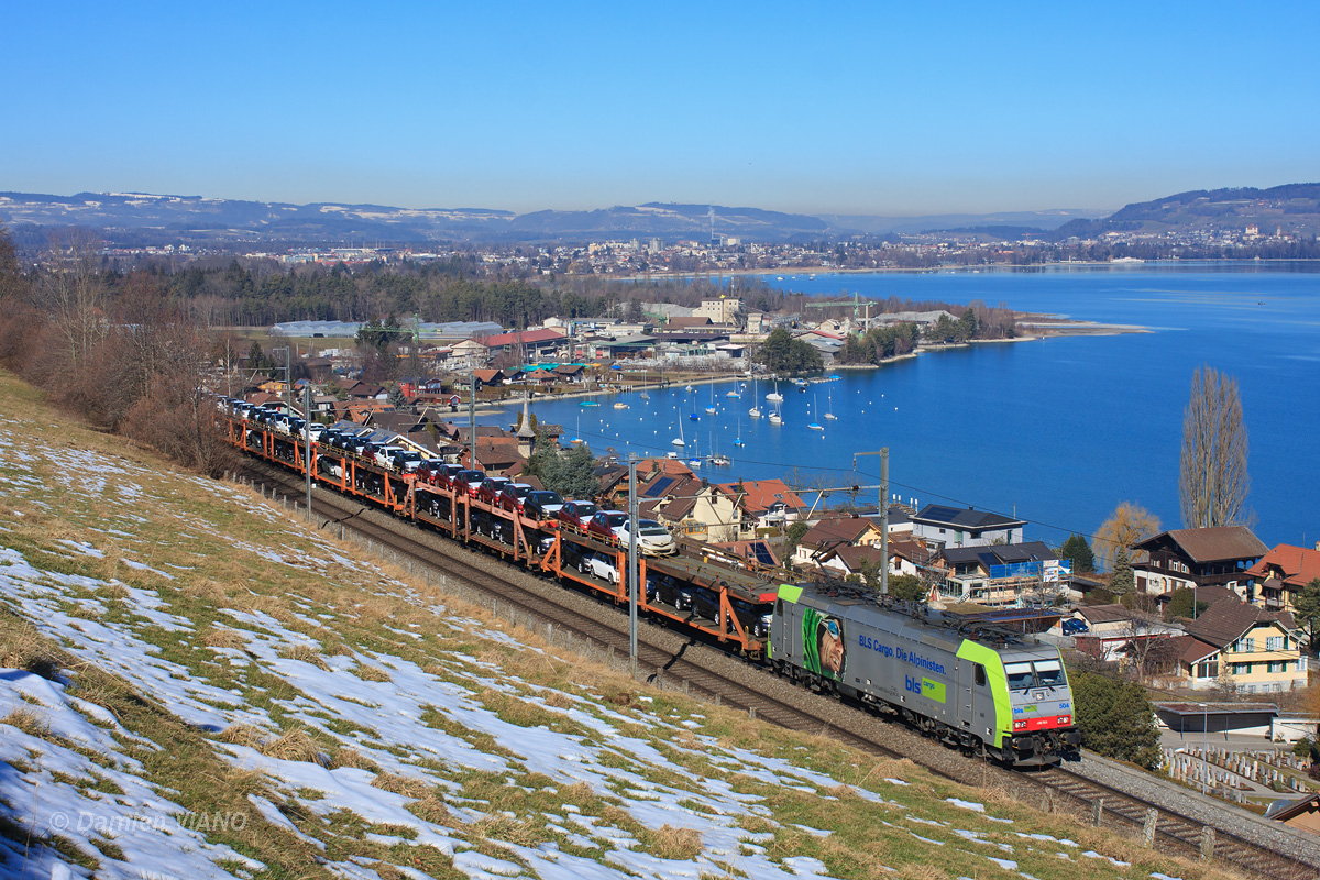 Détails photographie Titre : Re 486 BLS pour l'Italie Description : La Re 486 504-4 du BLS est vue au bord du lac de Thun, en tête d'un train d'automobiles se dirigeant vers la frontière Italienne via la ligne du Lötschberg. Date de la prise de vue : vendredi 24 février 2012 - 11h41 (heure locale) Date de mise en ligne : dimanche 30 juin 2013 - 14h23 Numéro de la photo : 5558 Dimensions de la photo : 1200x800 Taille du fichier : 561.27 Ko Cette photo appartient aux types de photo suivants : Trains en ligne Cette photo présente les éléments visuels suivants : Conditions météo - Jour Conditions météo - Neige Paysage - Clocher/Château Paysage - Mer/Lac/Étang Paysage - Montagne/Colline/Falaise Paysage - Navires/Bateaux Paysage - Village/Maisons Notes du photographe : Un grand merci à Luca V. pour le transport ! |