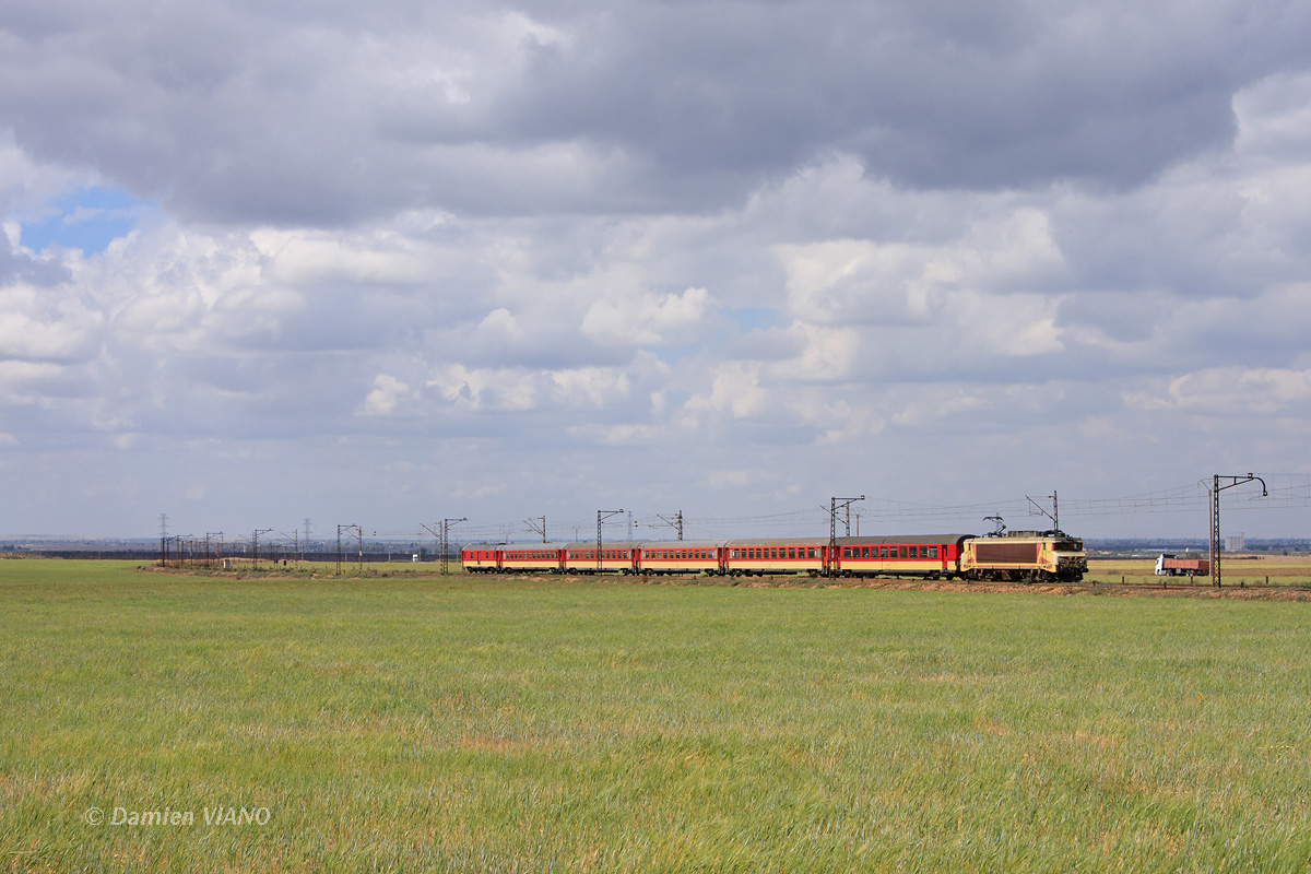 Détails photographie Titre : Train de voyageurs sur les phosphates Description : Sur la ligne de Khouribga, les lourds trains de phosphates se suivent dans un ballet incessant, alors qu'il ne circule que 2 trains de voyageurs dans chaque sens. Voici le 901 en provenance de Casablanca, vu au passage à niveau gardé de Tamdrost. Date de la prise de vue : vendredi 30 mars 2012 - 12h27 (heure locale) Date de mise en ligne : lundi 15 juillet 2013 - 15h16 Numéro de la photo : 5602 Dimensions de la photo : 1200x800 Taille du fichier : 350.91 Ko Cette photo appartient aux types de photo suivants : Trains en ligne Cette photo présente les éléments visuels suivants : Conditions météo - Ciel très nuageux Conditions météo - Jour |