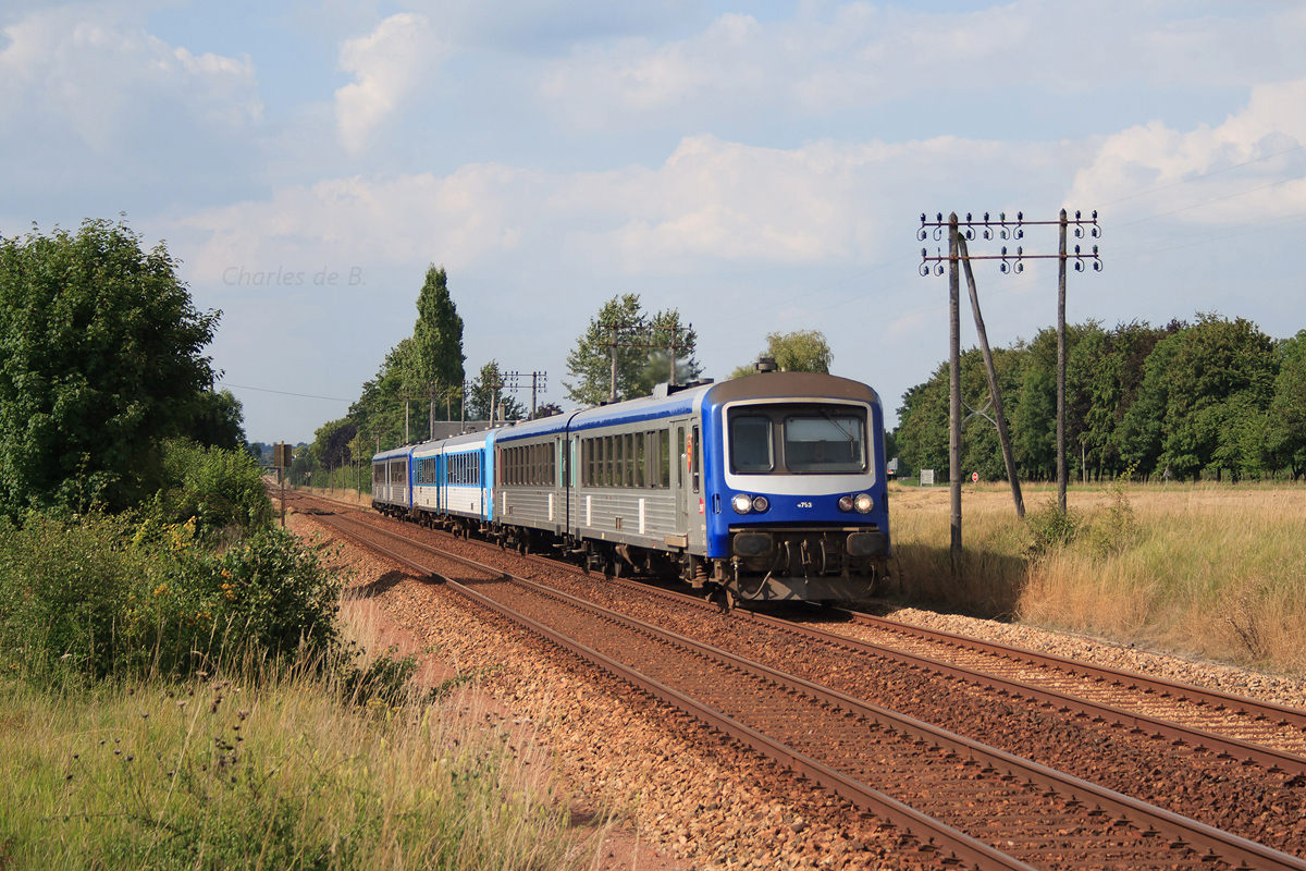 Détails photographie Titre : Triplette d'EAD pour Tours Description : Venant de desservir la gare de Sées, le TER 857210 Caen - Tours fait appel à une UM triple d'EAD (X 4793, X 4751, X 4794). À noter que le X 4751, après mutation en Lorraine, a finalement été radié le 13 décembre 2012. Date de la prise de vue : dimanche 31 juillet 2011 - 17h21 (heure locale) Date de mise en ligne : vendredi 13 septembre 2013 - 12h35 Numéro de la photo : 5761 Dimensions de la photo : 1200x800 Taille du fichier : 697.1 Ko Cette photo appartient aux types de photo suivants : Trains en ligne Cette photo présente les éléments visuels suivants : Conditions météo - Ciel très nuageux Conditions météo - Jour Éléments ferroviaires - Matériel blasonné (en relief) Éléments ferroviaires - Pancarte/Tableau Éléments ferroviaires - Poteaux télégraphiques |