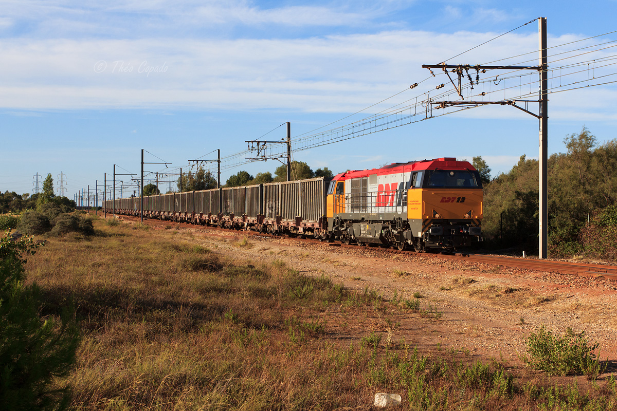 Détails photographie Titre : Changement pour le Gadoue Description : Assuré par RDT13 depuis quelques semaines, le train d'ordures ménagères circulant entre Marseille-Blancarde et l'incinérateur de Fos est vu proche de son arrivée, dans le golf de Fos. Date de la prise de vue : lundi 09 septembre 2013 - 18h18 (heure locale) Date de mise en ligne : mardi 17 septembre 2013 - 19h00 Numéro de la photo : 5777 Dimensions de la photo : 1200x800 Taille du fichier : 595.97 Ko Cette photo appartient aux types de photo suivants : Trains en ligne Cette photo présente les éléments visuels suivants : Conditions météo - Jour Éléments ferroviaires - Caténaire 1.5 kV Éléments ferroviaires - Pancarte kilométrique/hectométrique/PN |
