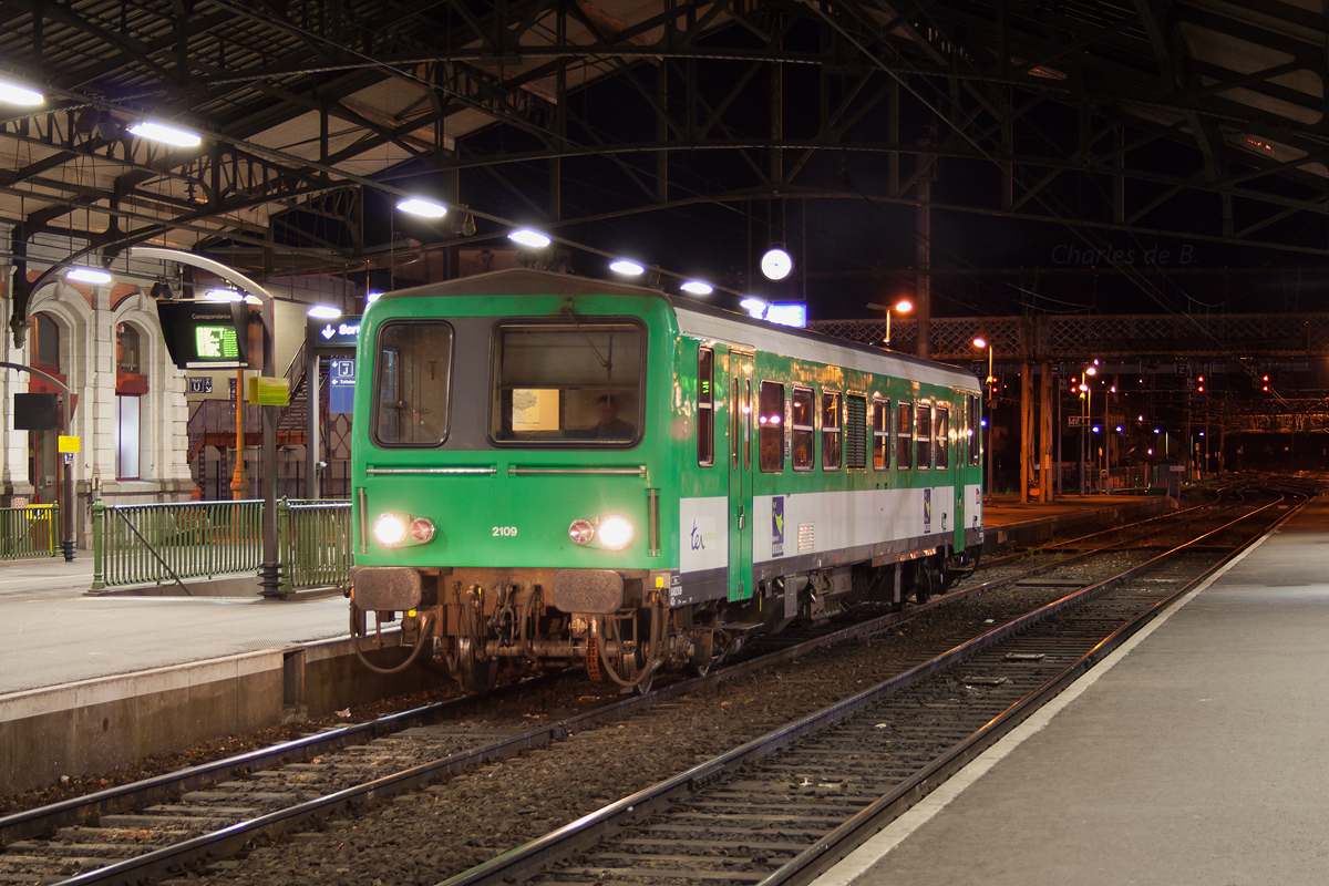 Détails photographie Titre : X 2109 en extrême soirée Description : Une image pouvant être désormais rangée au rang des souvenirs : l'X 2109 en livrée Vert Perroquet, ex-TER Bretagne, se met à quai en gare de Brive-la-Gaillarde, en vue d'assurer en solo le TER 870169 pour Rodez. Depuis, cet autorail a été radié, le 12 septembre 2011. Date de la prise de vue : mercredi 13 avril 2011 - 21h30 (heure locale) Date de mise en ligne : samedi 21 septembre 2013 - 15h01 Numéro de la photo : 5788 Dimensions de la photo : 1200x800 Taille du fichier : 585.67 Ko Cette photo appartient aux types de photo suivants : Trains en gare Cette photo présente les éléments visuels suivants : Conditions météo - Nuit Éléments ferroviaires - Bâtiment voyageur (BV) Éléments ferroviaires - Caténaire 1.5 kV Éléments ferroviaires - Marquise/Verrière Éléments ferroviaires - Pancarte/Tableau Éléments ferroviaires - Signalisation lumineuse Notes du photographe : Merci à Vincent. |